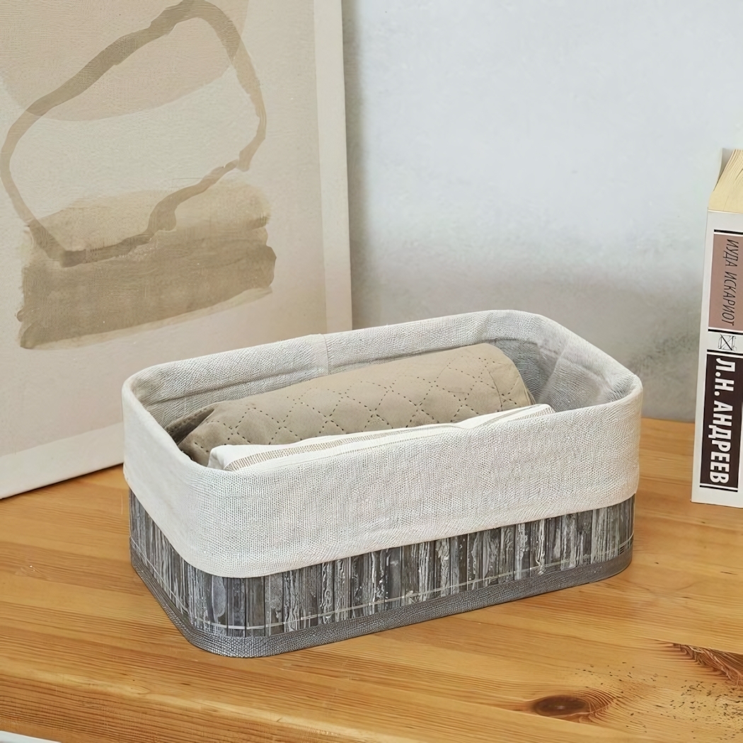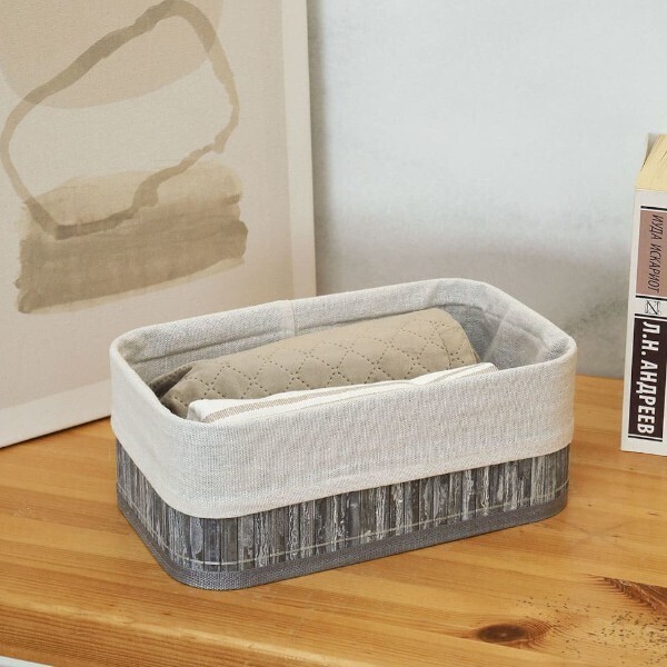 Выберите корзину "Бамбук" и обеспечьте организованное хранение с ноткой комфорта. Прочная конструкция из натуральных бамбуковых палочек не только удобно сохраняет любые мелочи, но и гармонично вписывается в современный интерьер благодаря своему светло-серому оформлению и универсальному дизайну.