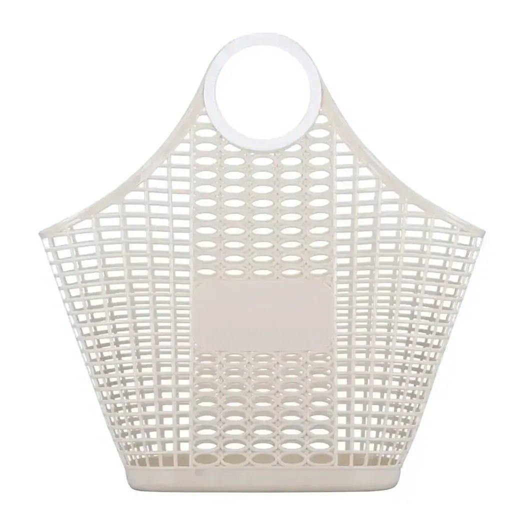 Стильная корзина-сумка из прочного пластика — идеальное решение для хранения вещей в доме, на даче или в кладовой. Сетчатая структура обеспечивает вентиляцию содержимого, а герметичная крышка защитит от пыли и влаги.