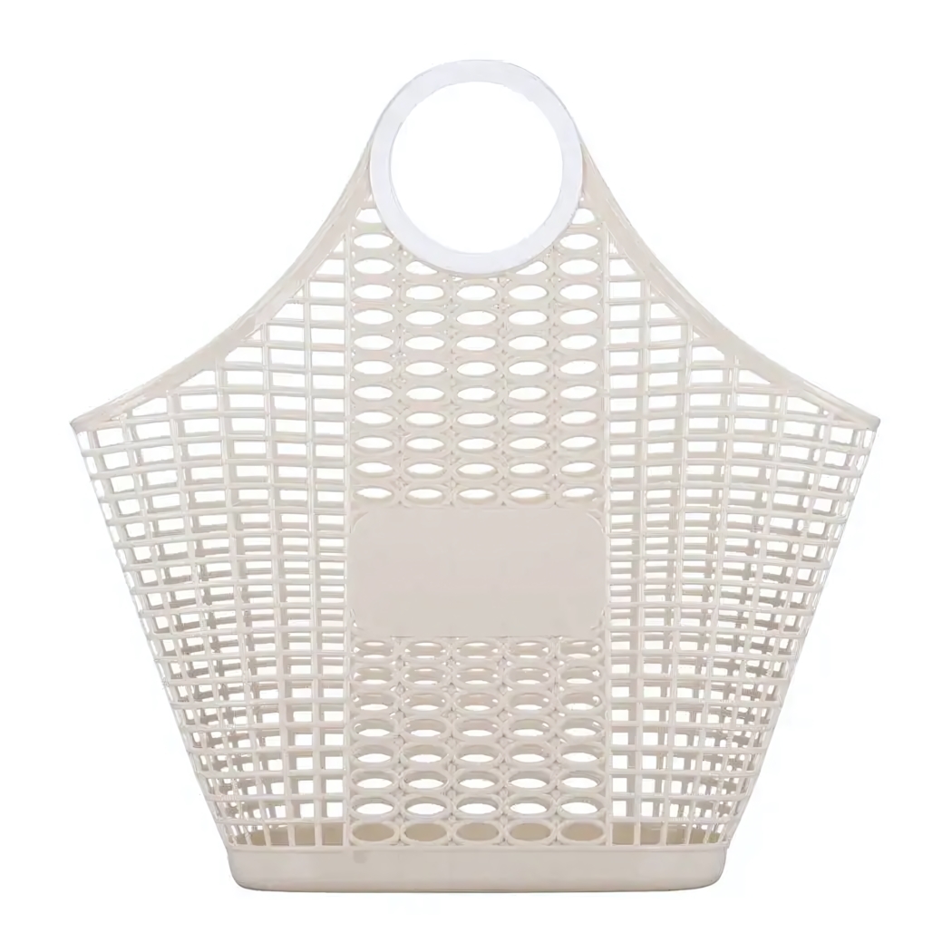Корзина-сумка пластиковая с крышкой и ручкой, цвет слоновая кость, для хранения