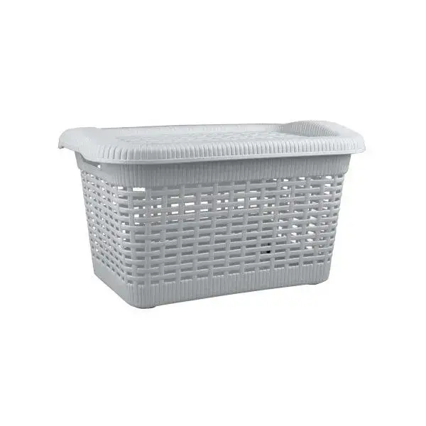 Корзина универсальная с крышкой 20л, пластик, 45х30х25 см, светло-серый