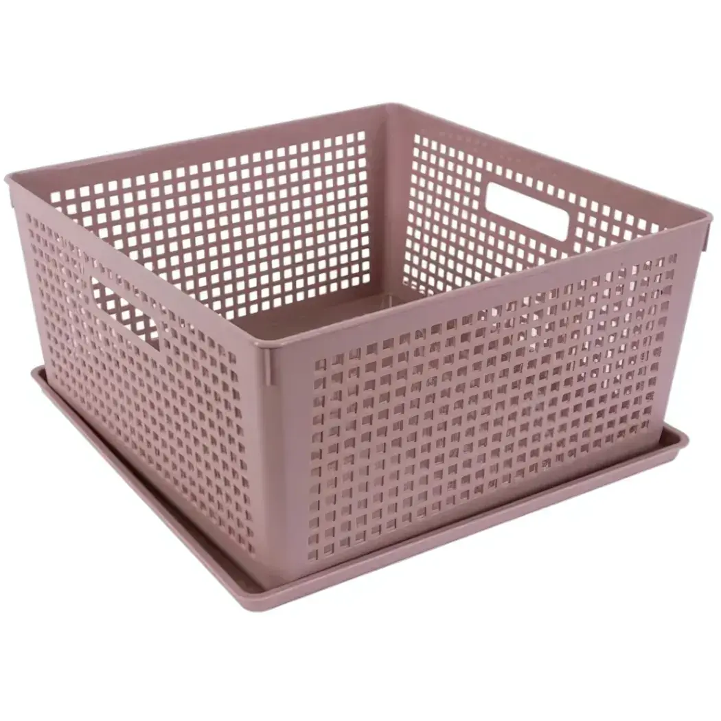 Корзина пластиковая с крышкой 12л, розовая, 31х31х15см, перфорированная