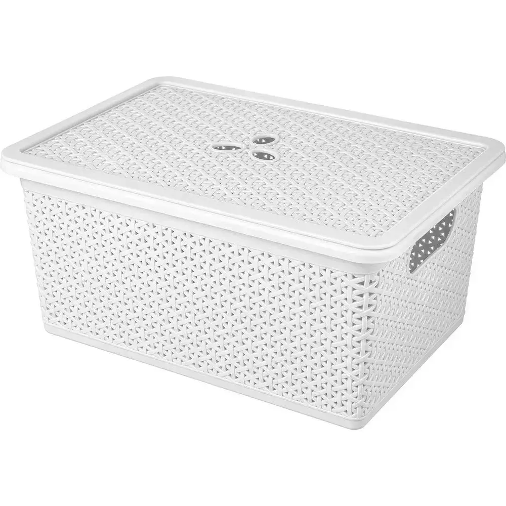 Прямоугольная корзина с декоративным плетёным узором сочетает функциональность и эстетику. Объём 15 литров и продуманная форма 398х177 мм позволяют компактно размещать её в шкафу, под кроватью или использовать как элемент интерьера. Плотно прилегающая крышка защищает вещи от пыли, сохраняя порядок в доме.