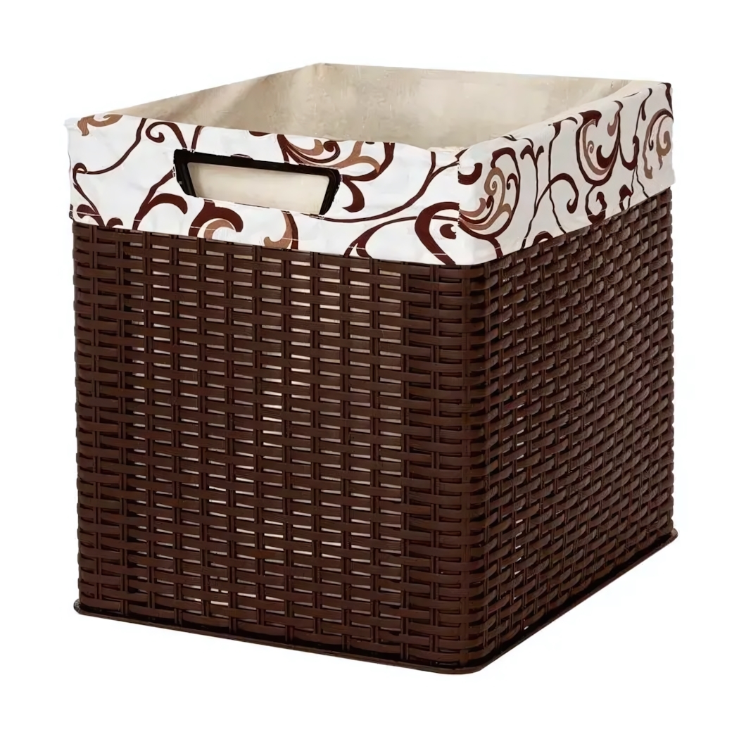 Корзина «Уют» сочетает функциональность хранения и декоративную привлекательность. Благодаря съемной облицовке с изящным узором вы легко можете менять внешний вид интерьера, подстраиваясь под настроение или сезон.