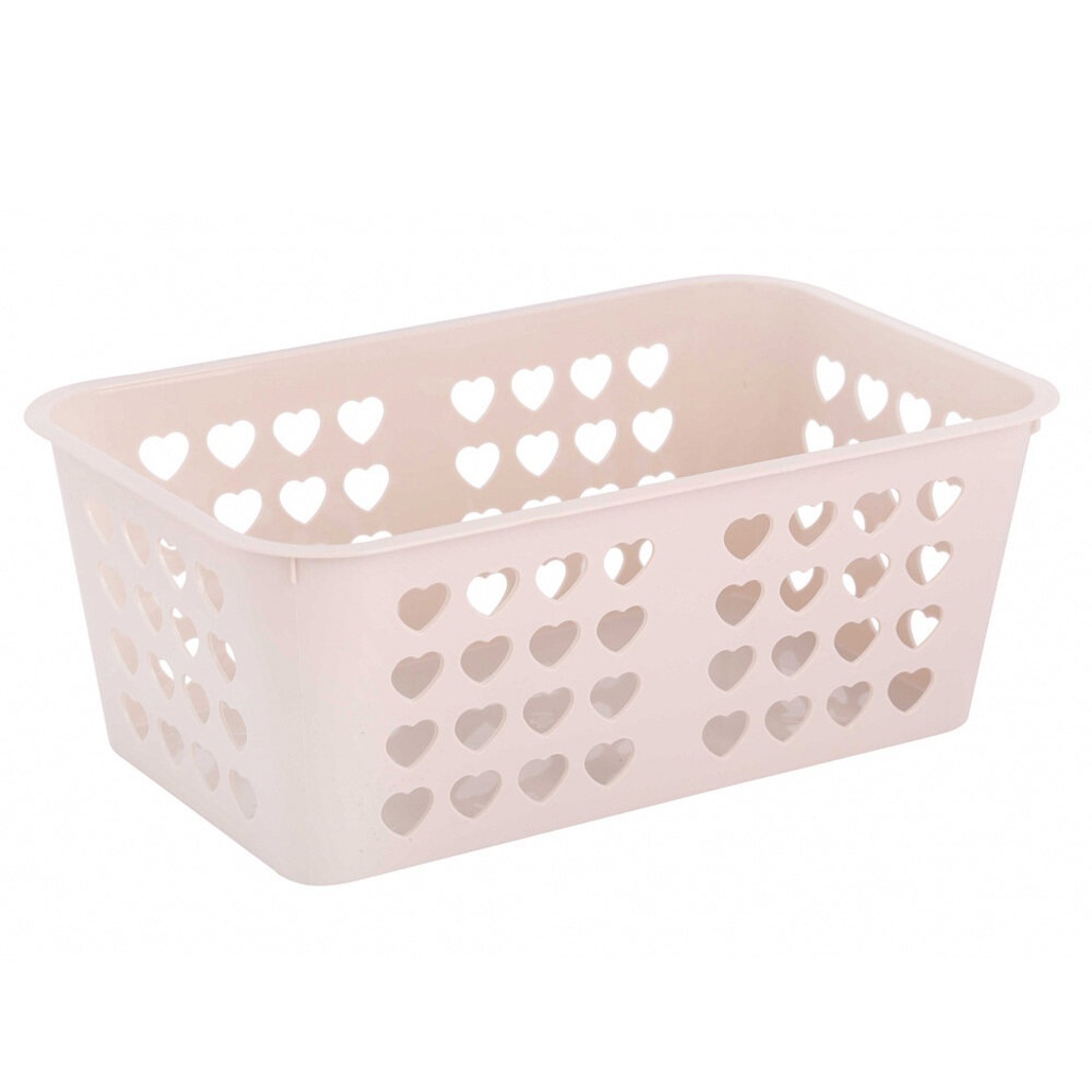 Практичная и эстетичная корзина для хранения с перфорацией в виде сердечек — идеальное решение для поддержания порядка в ванной, детской или прихожей. Легкий пластиковый корпус сочетает функциональность и декоративность, превращая обычное хранение в элемент интерьера.