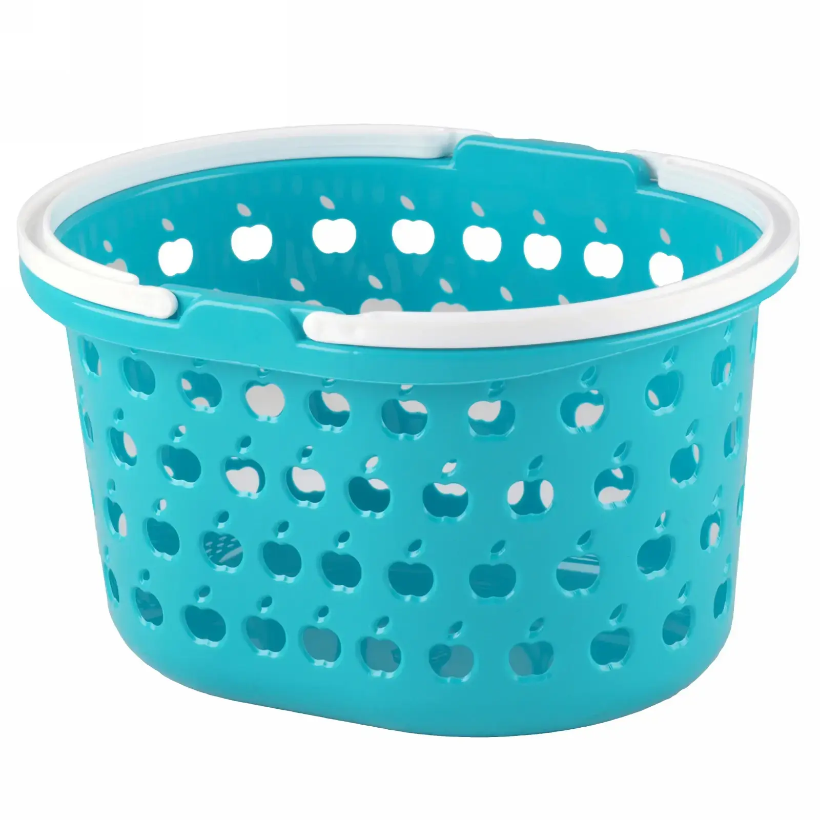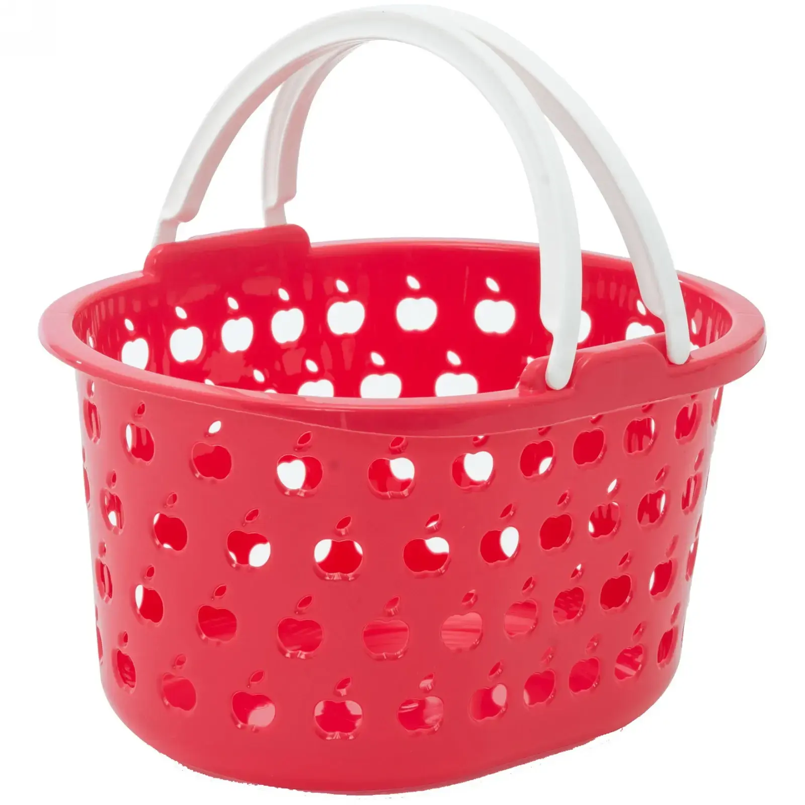 Корзинка выполнена из высококачественного пластика, что обеспечивает ей легкость и прочность. Она оснащена двумя удобными белыми ручками, что позволяет легко переносить её с места на место. Благодаря округлой форме и перфорации в виде яблок, корзинка обеспечивает хорошую вентиляцию содержимого, что особенно важно при хранении свежих овощей и фруктов.