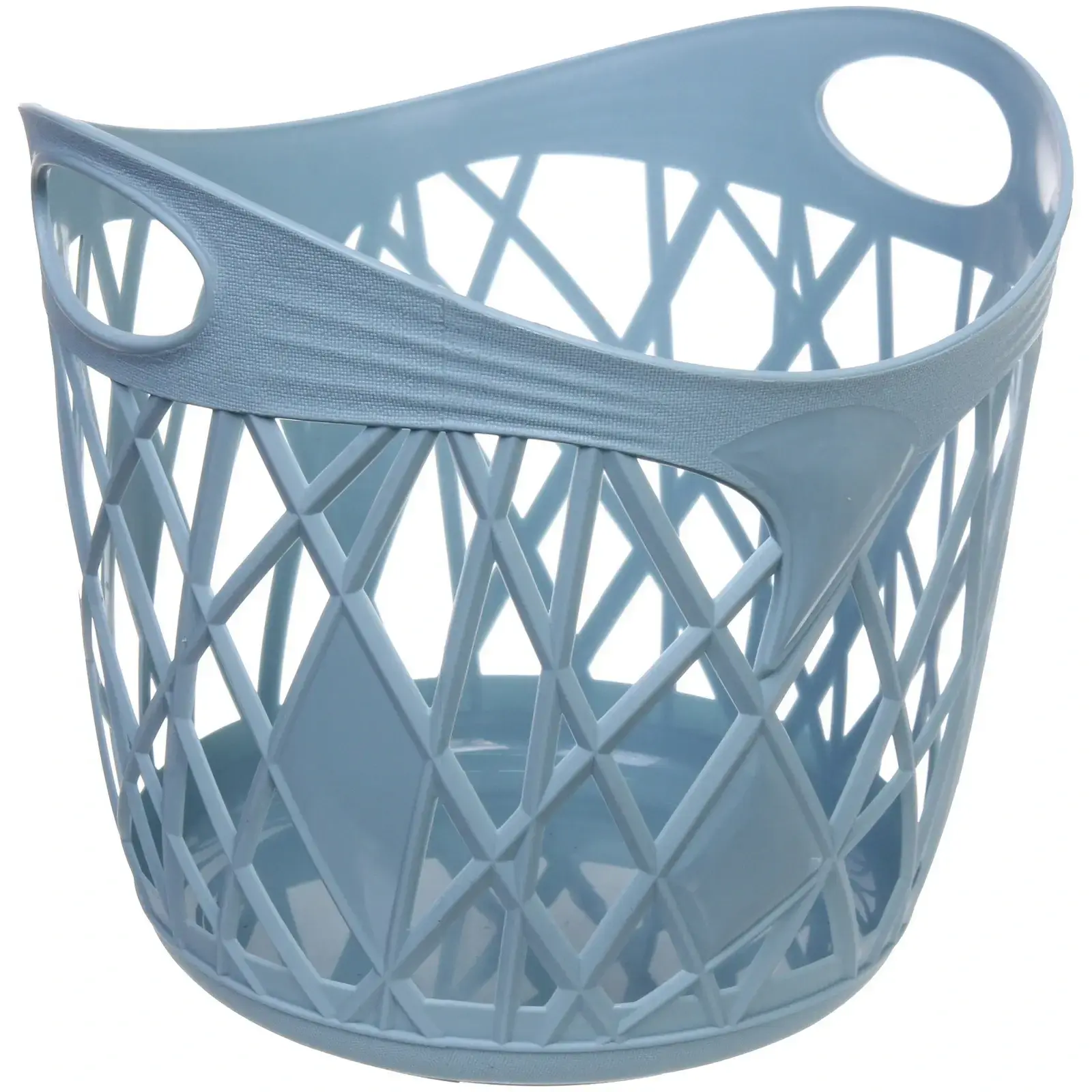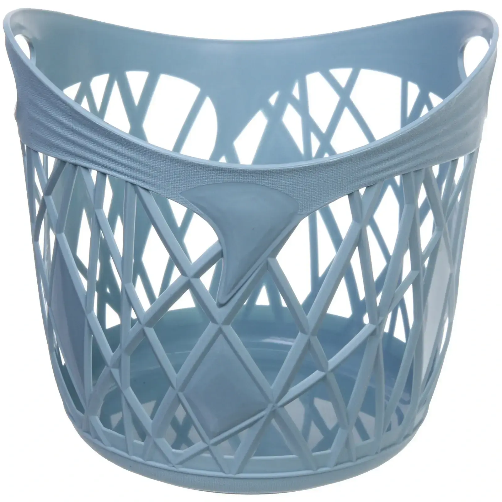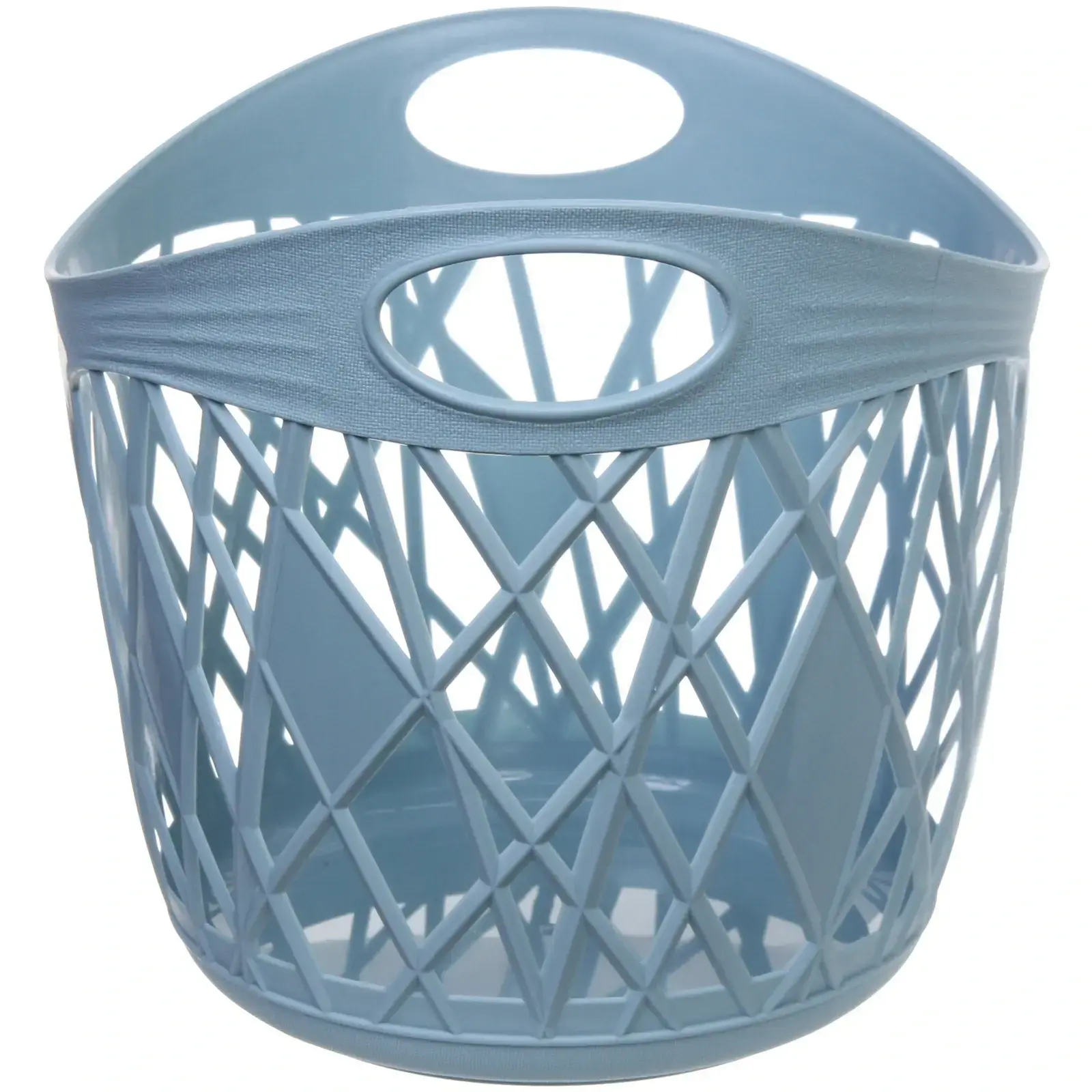 Корзинка имеет круглую форму и размеры 25.5х25х23.5 см, что делает ее идеальной для использования в различных помещениях: от детской комнаты до ванной. Две удобные ручки обеспечивают легкость переноски, а сетчатая структура позволяет видеть содержимое, что упрощает поиск нужных вещей.