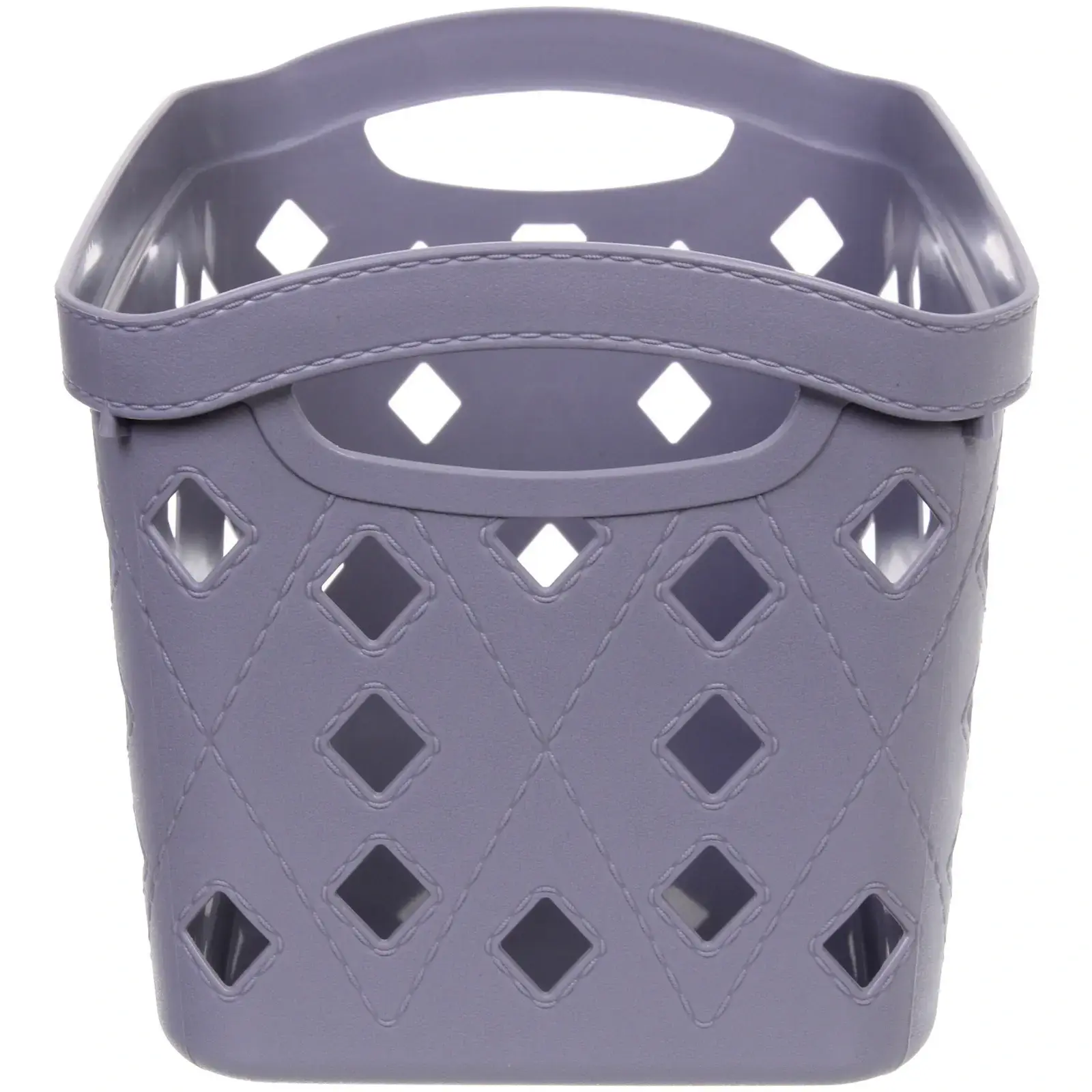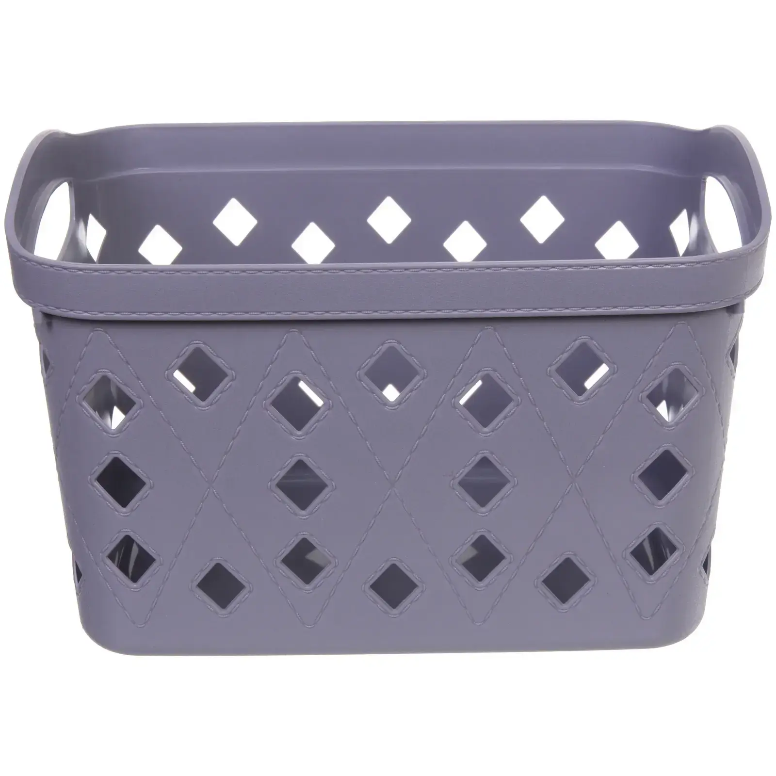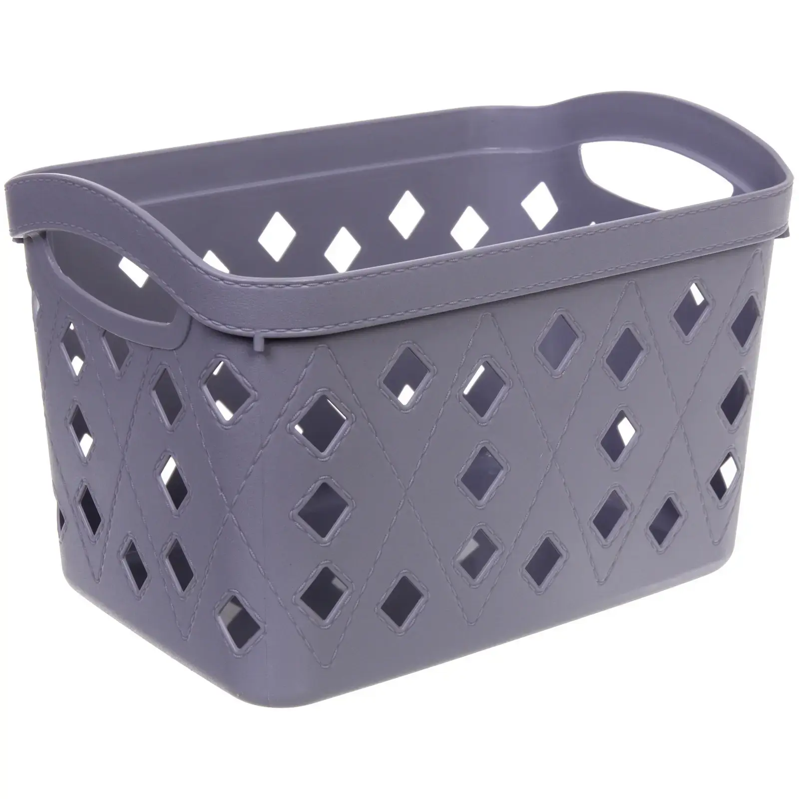 Корзинка выполнена из прочного и легкого пластика, что гарантирует её долговечность и простоту в уходе. Перфорация в виде ромбов не только добавляет стильный акцент, но и обеспечивает хорошую вентиляцию, что особенно важно для хранения текстильных изделий. Простота дизайна позволяет использовать корзину в любом интерьере, а её цвет легко сочетается с другими предметами.