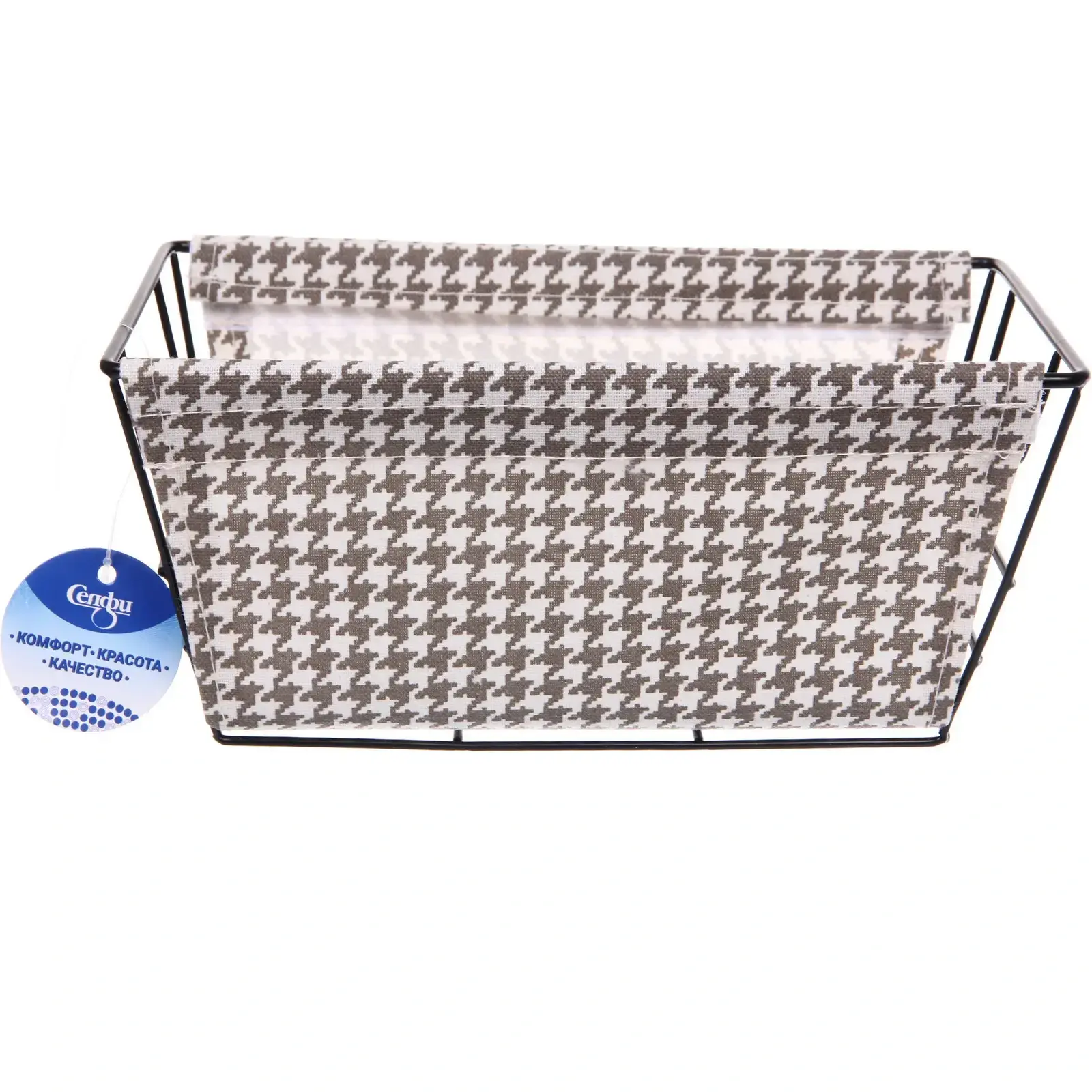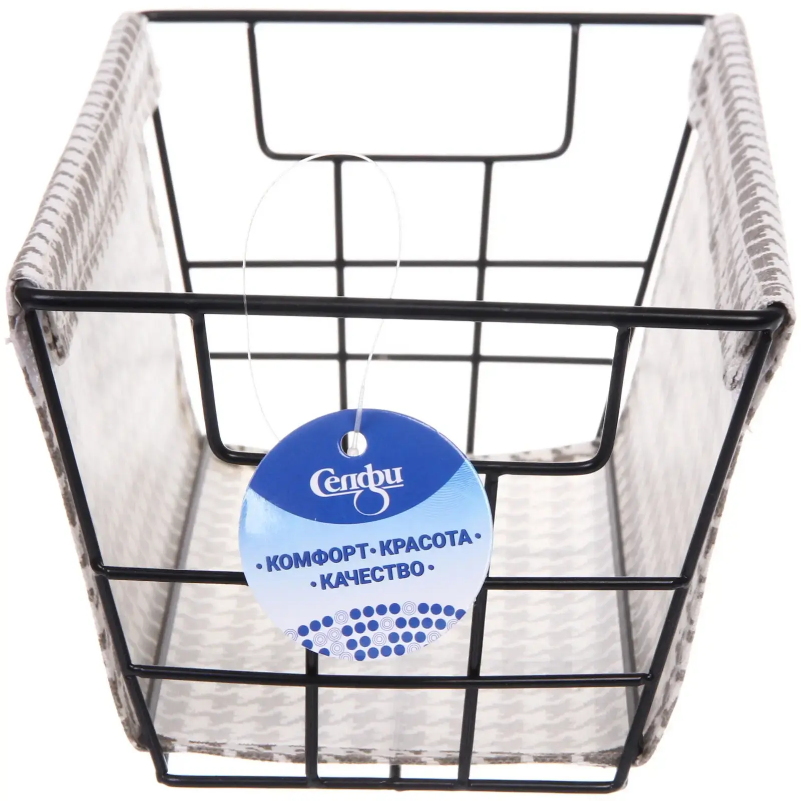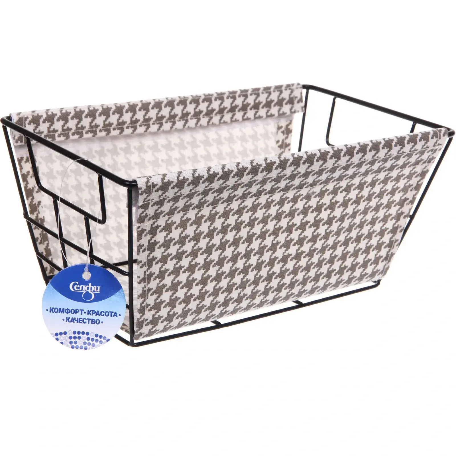 Корзинка выполнена из качественного металла и текстиля, что гарантирует ее долговечность и легкость в уходе. Она не требует сложного ухода — достаточно протереть ее влажной тряпкой для поддержания чистоты. Размеры корзинки 25 см в длину, 15 см в ширину и 12 см в высоту, что делает ее удобной для хранения на полках или в шкафах.