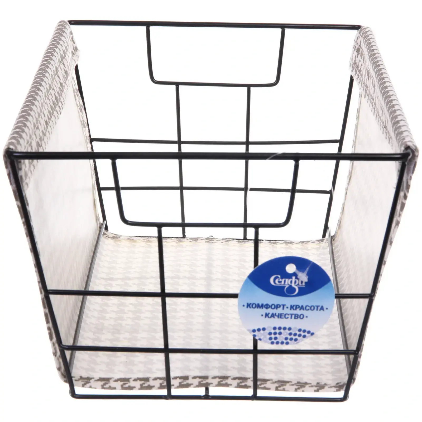 Корзинка «ЭЛИНТ» изготовлена из прочного металла и текстиля, что обеспечивает долговечность и надежность. Металлический каркас гарантирует устойчивость, а текстильная вставка добавляет мягкость и стиль. Размеры 30х20х15 см позволяют использовать корзинку в ограниченных пространствах, не занимая много места.
