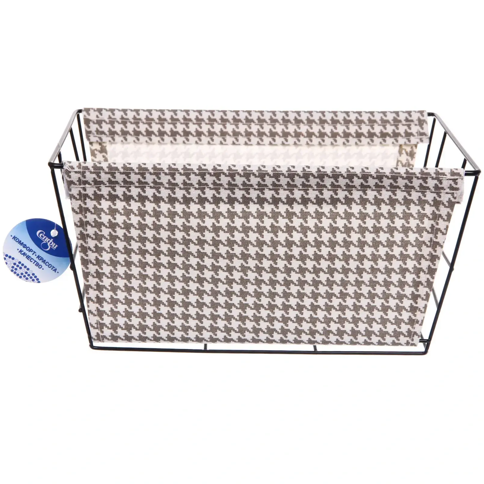 Корзинка имеет прямоугольную форму и открытые стороны, что делает её удобной для доступа к содержимому. Цвет пастельно серый легко вписывается в любой интерьер, а текстильная вставка с узором добавляет изюминку. Не упустите возможность сделать ваш дом более организованным и стильным с корзинкой «ЭЛИНТ»!