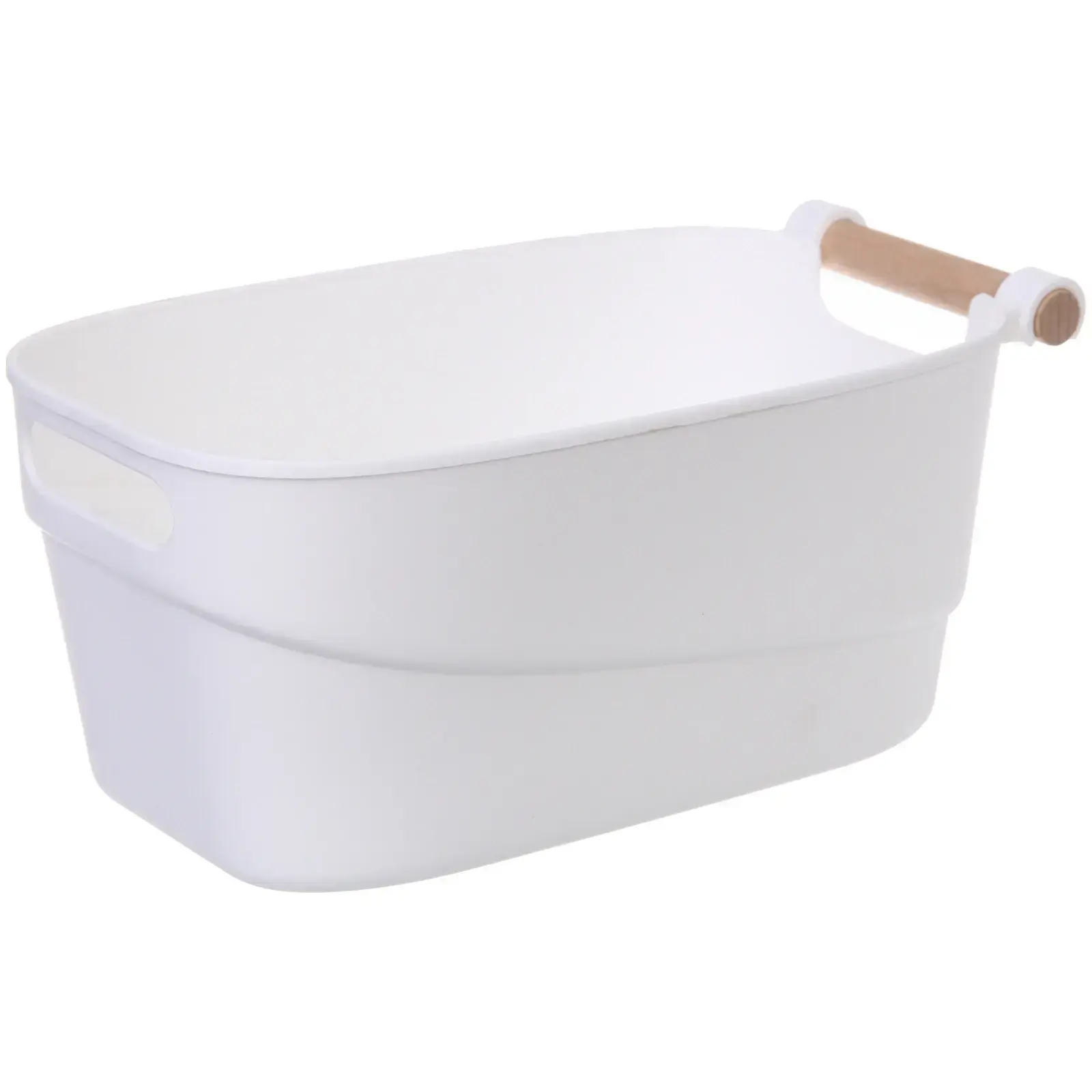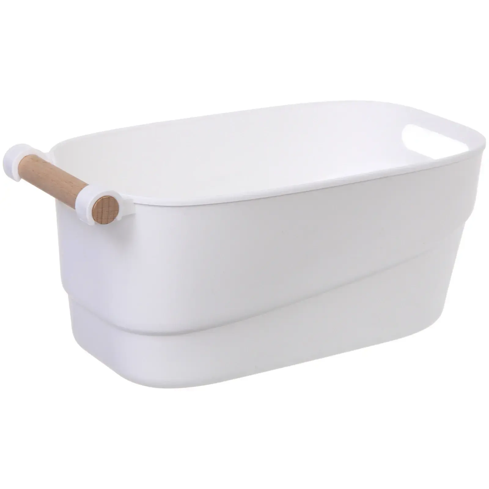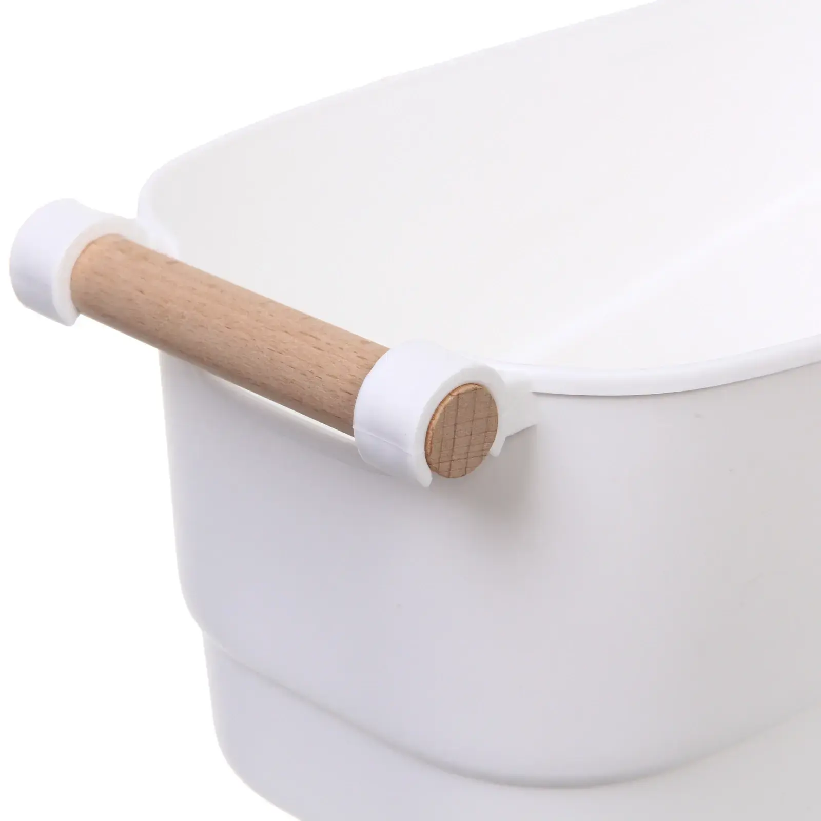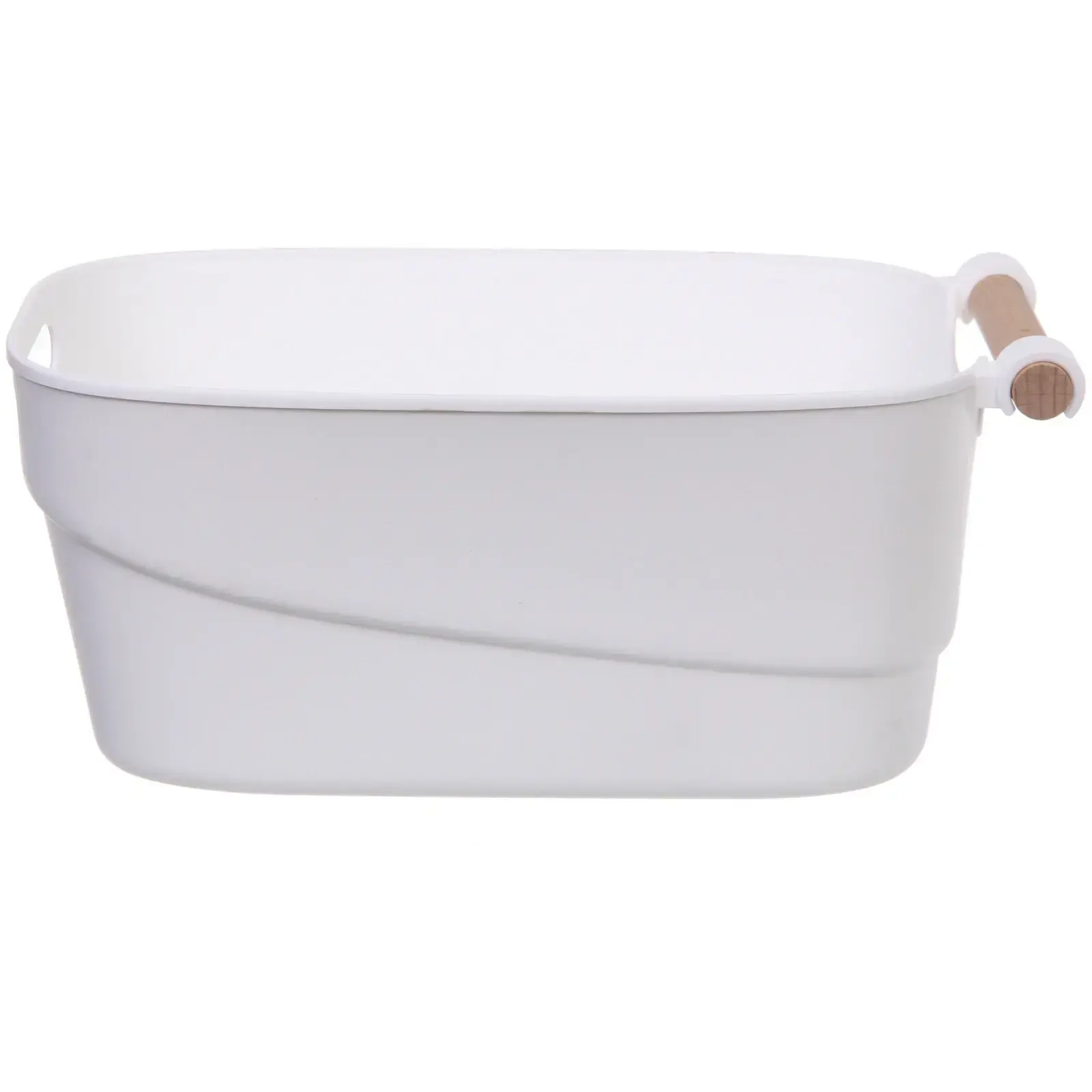 Корзинка имеет размеры 27х14.5х12 см, что делает её достаточно вместительной для хранения мелочей. Бамбуковая ручка обеспечивает удобство при переноске, а гладкая пластиковая поверхность легко чистится. Корзинка подходит для использования в различных помещениях: в детской, на кухне или в ванной комнате.