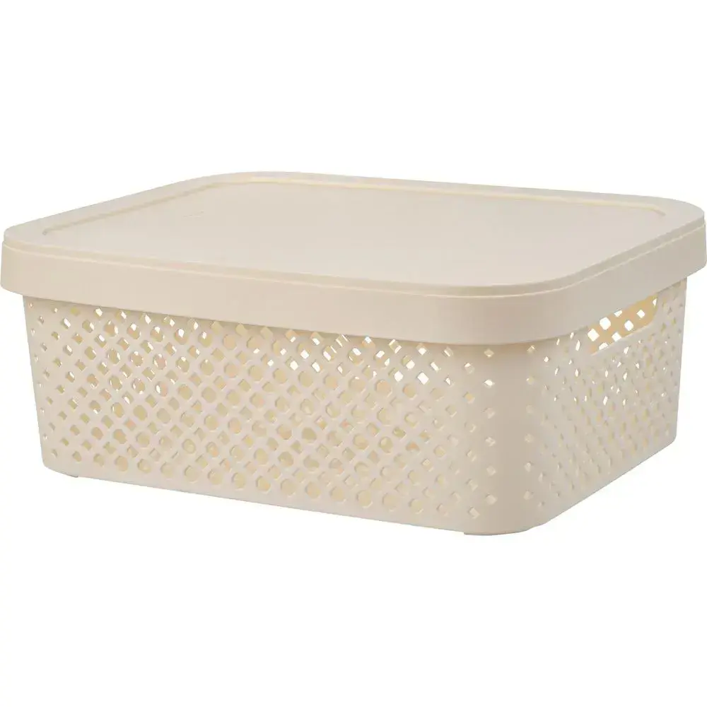 Корзина для хранения 'Stockholm' с крышкой, 10 л, пластик, перфорация, молочный туман