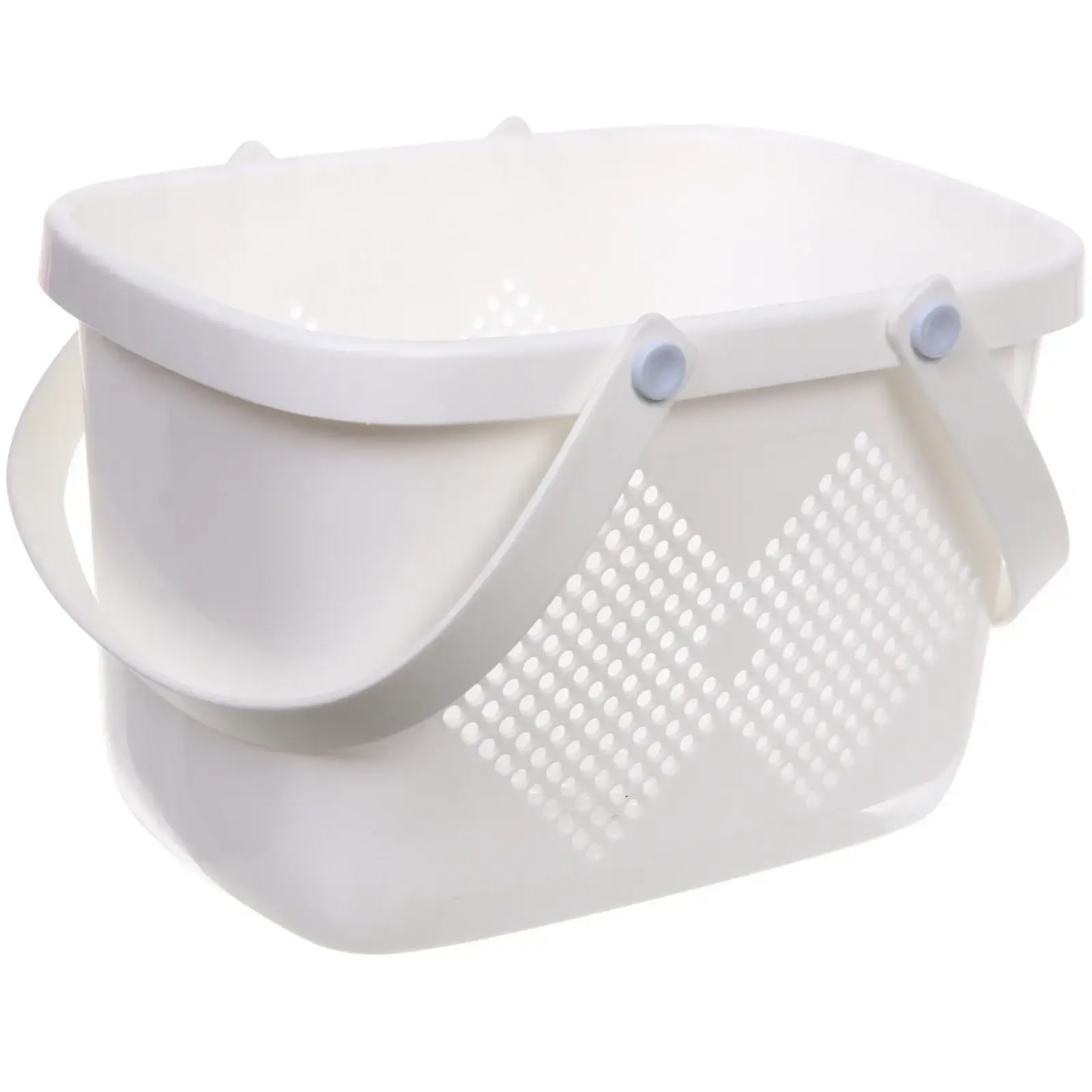 Размеры корзинки составляют 27.5 см в длину, 20 см в ширину и 18 см в высоту, что делает ее достаточно вместительной для хранения различных предметов. Корзинка выполнена из качественного пластика, который отличается прочностью и легкостью. Силиконовые ручки крепятся надежно, что обеспечивает долговечность и удобство в использовании.
