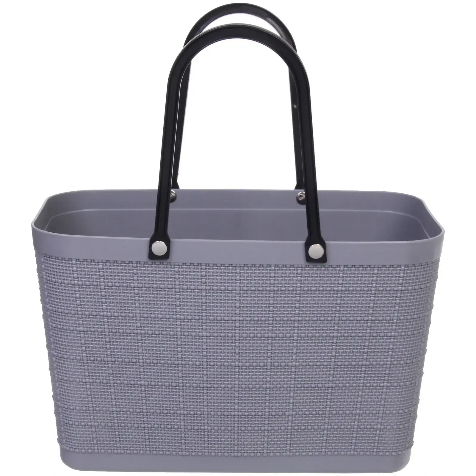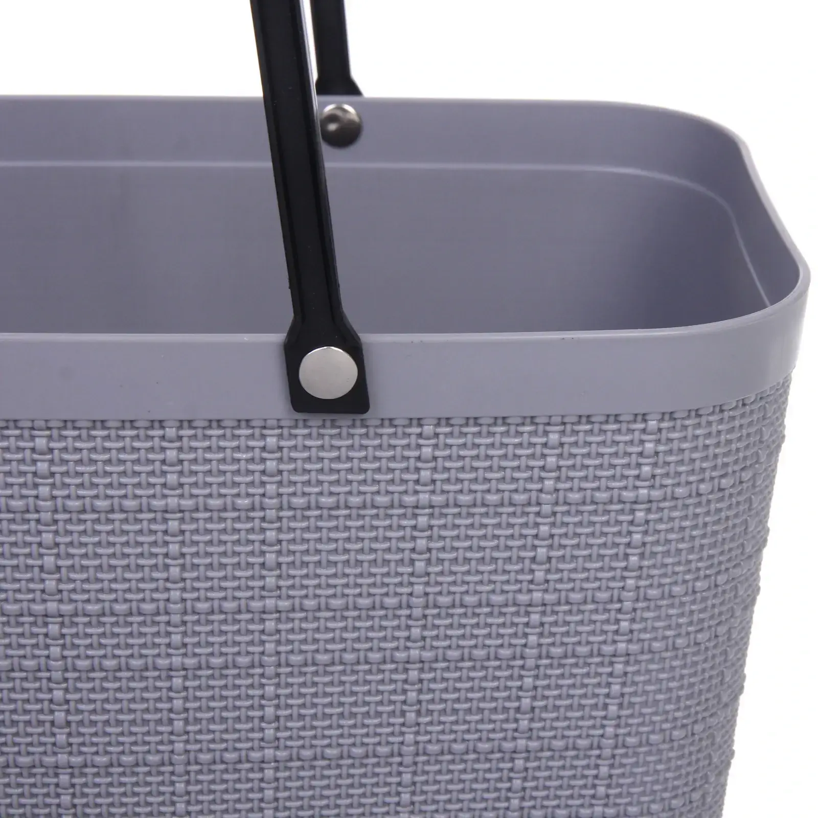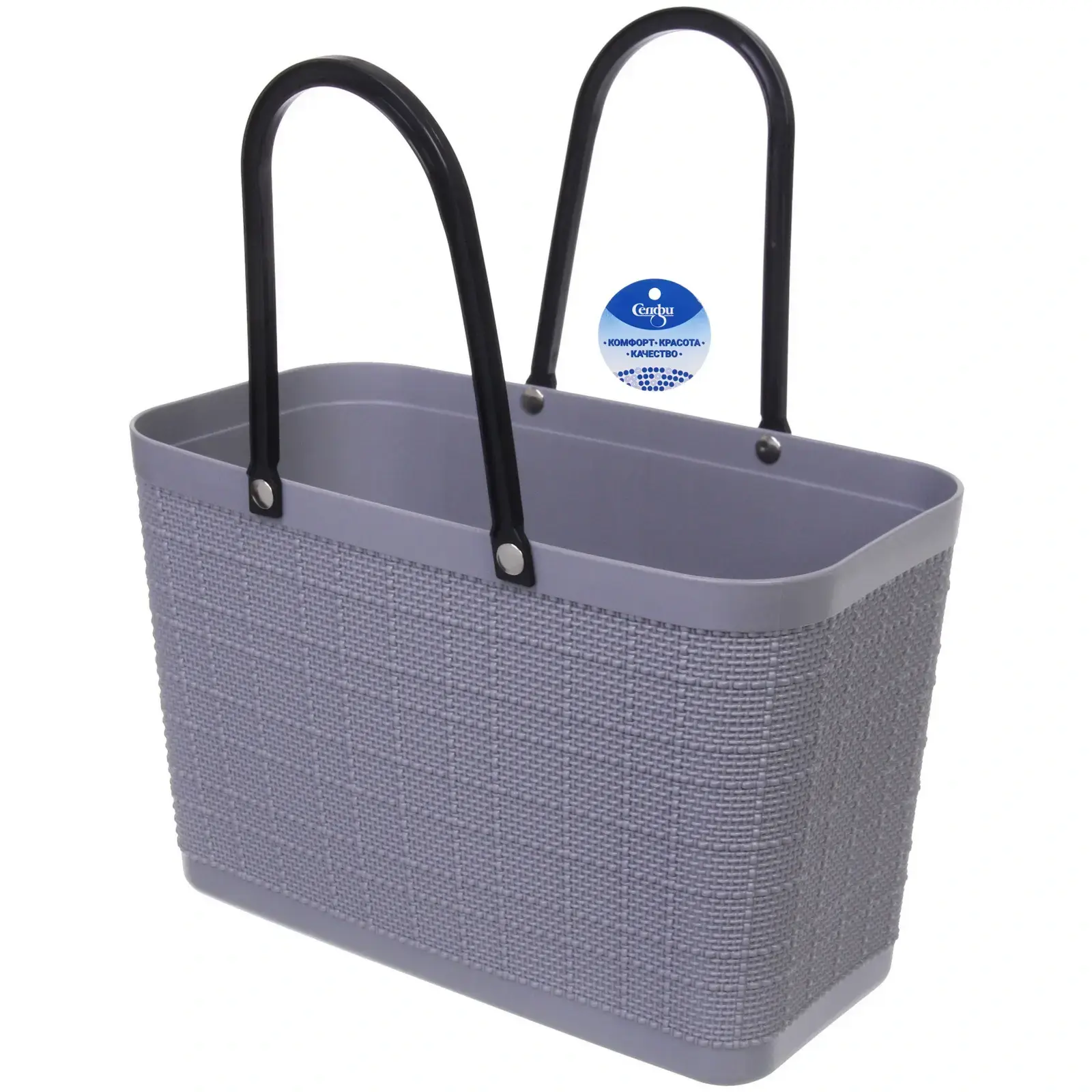 Корзинка предназначена для хранения и транспортировки вещей. Она отлично подходит для использования в детской комнате, ванной, на кухне или в прихожей. Два прочных черных ручки с металлическими креплениями обеспечивают надежный захват и удобство при переноске. Пластиковый материал гарантирует долговечность и легкость в уходе.