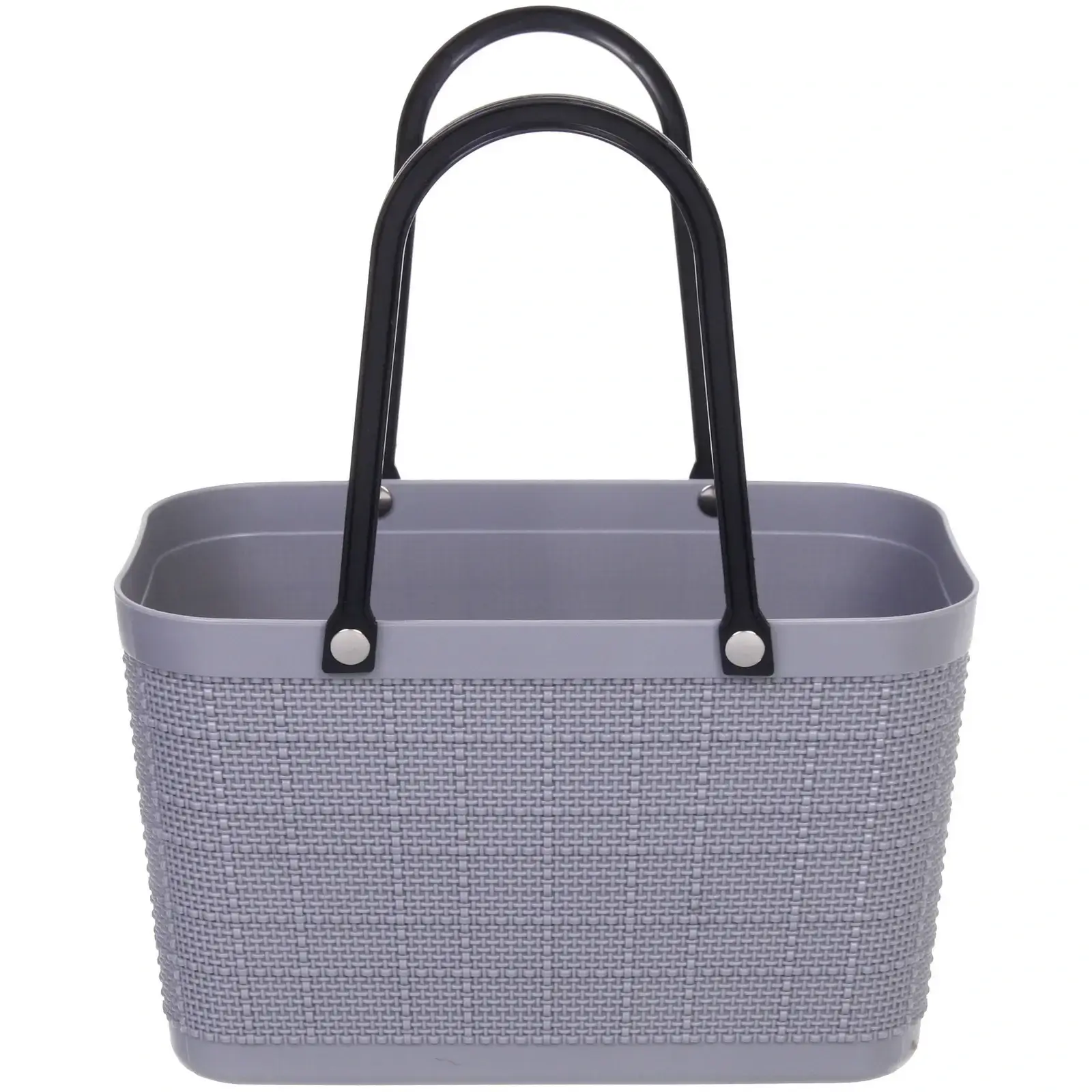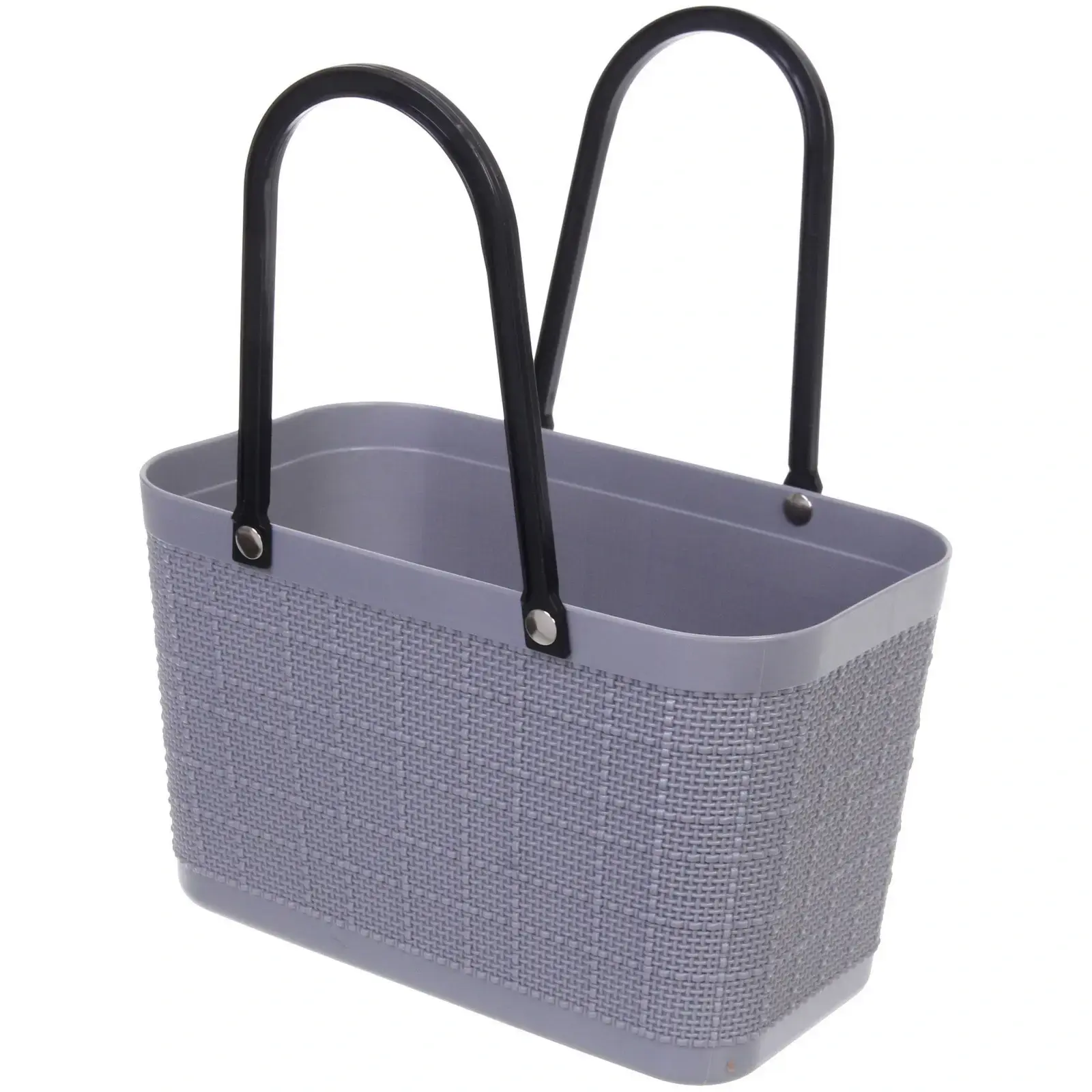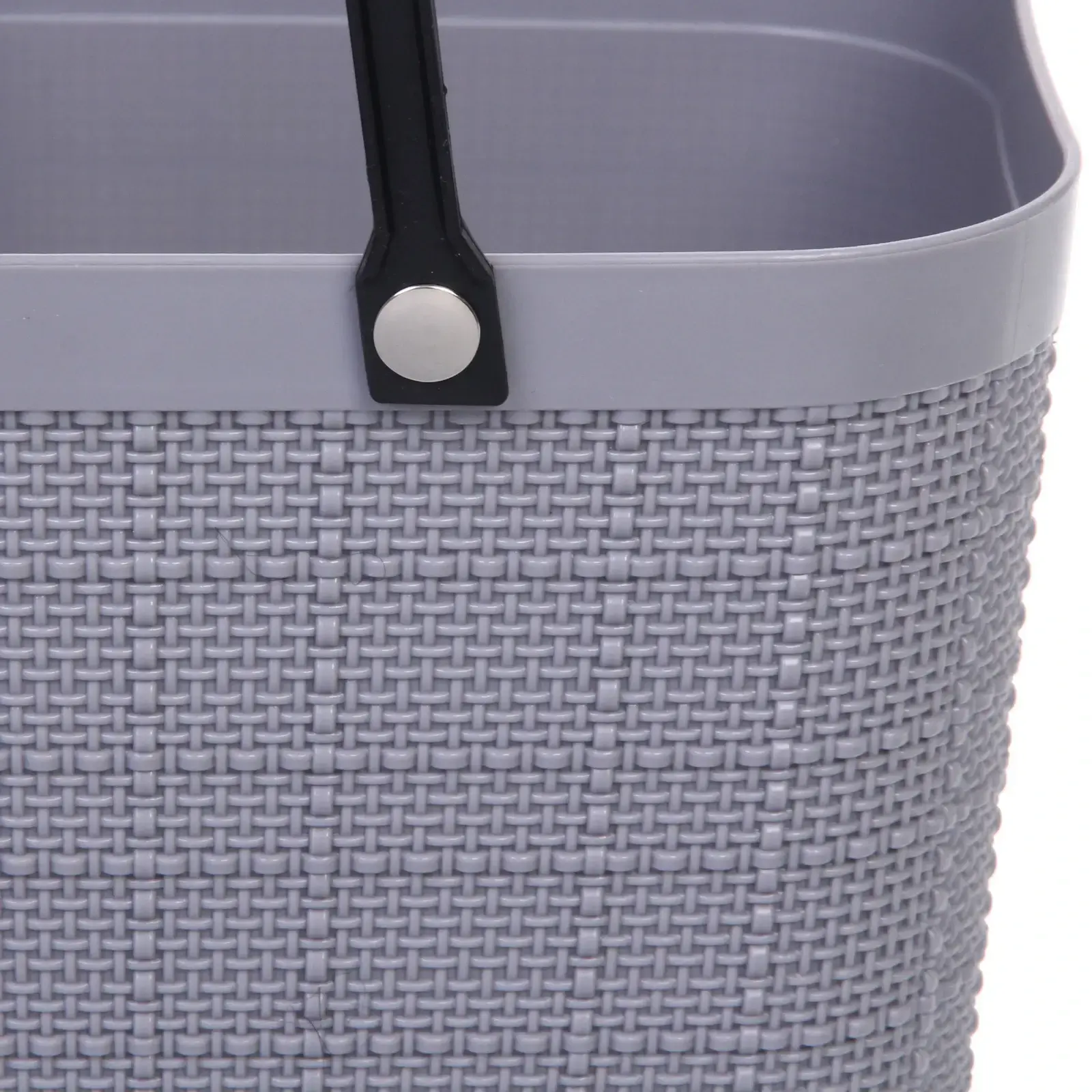 Корзинка «ФОЛЬК» выполнена из прочного пластика, что обеспечивает долговечность и надежность в использовании. Она имеет прямоугольную форму с закругленными углами, что делает её безопасной для детей и удобной в обращении. Черные ручки, крепящиеся с помощью металлических кнопок, обеспечивают комфорт при переноске и использовании. Корзина открыта сверху, что позволяет легко помещать и извлекать содержимое.