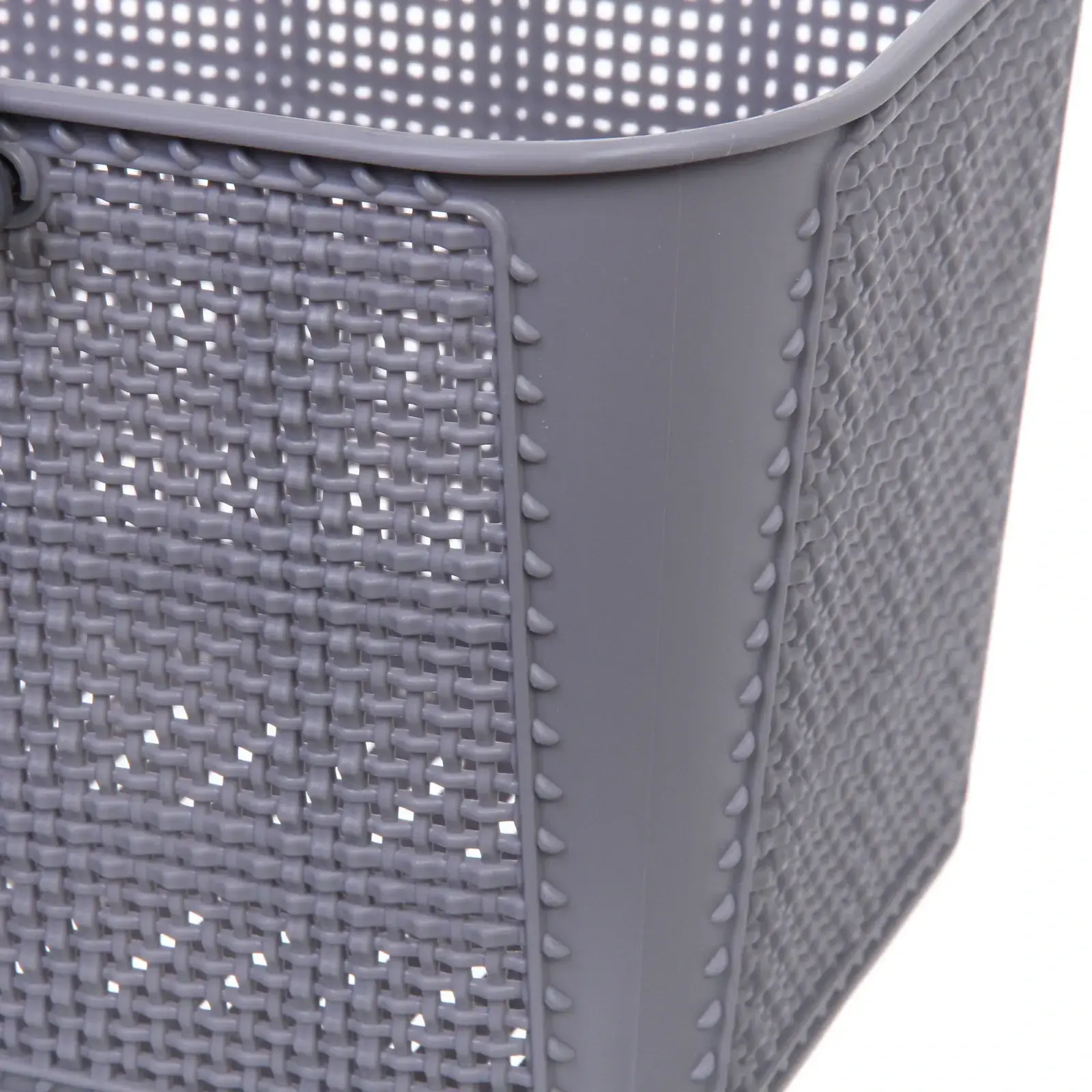 Размеры корзинки составляют 28.5 см в длину, 17.5 см в ширину и 16 см в высоту, что делает ее достаточно вместительной для повседневного использования. Пластиковый материал легко чистится и не требует особого ухода, что добавляет удобства в использовании. Корзинка «ФОЛЬК» — это не только функциональный, но и стильный элемент вашего дома.