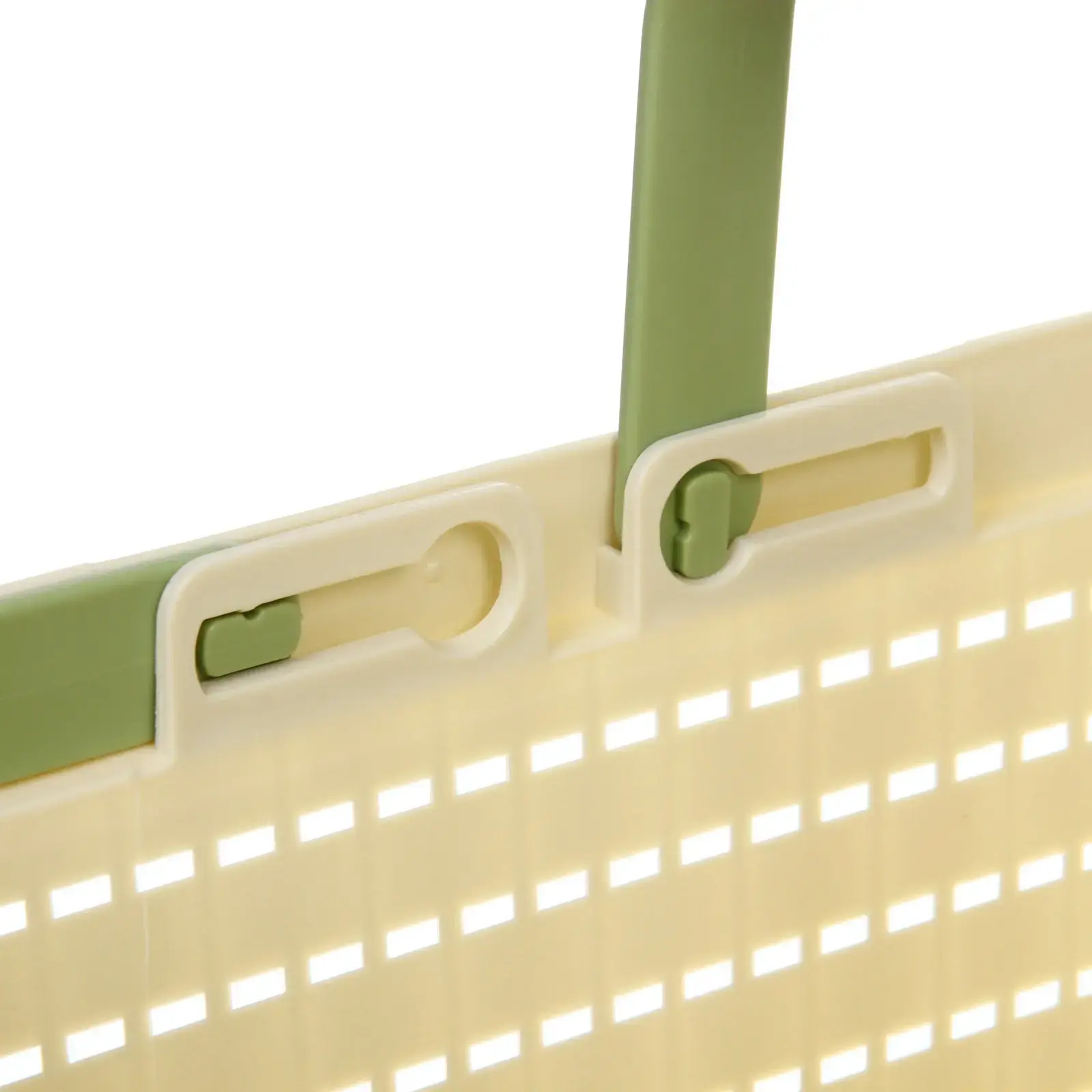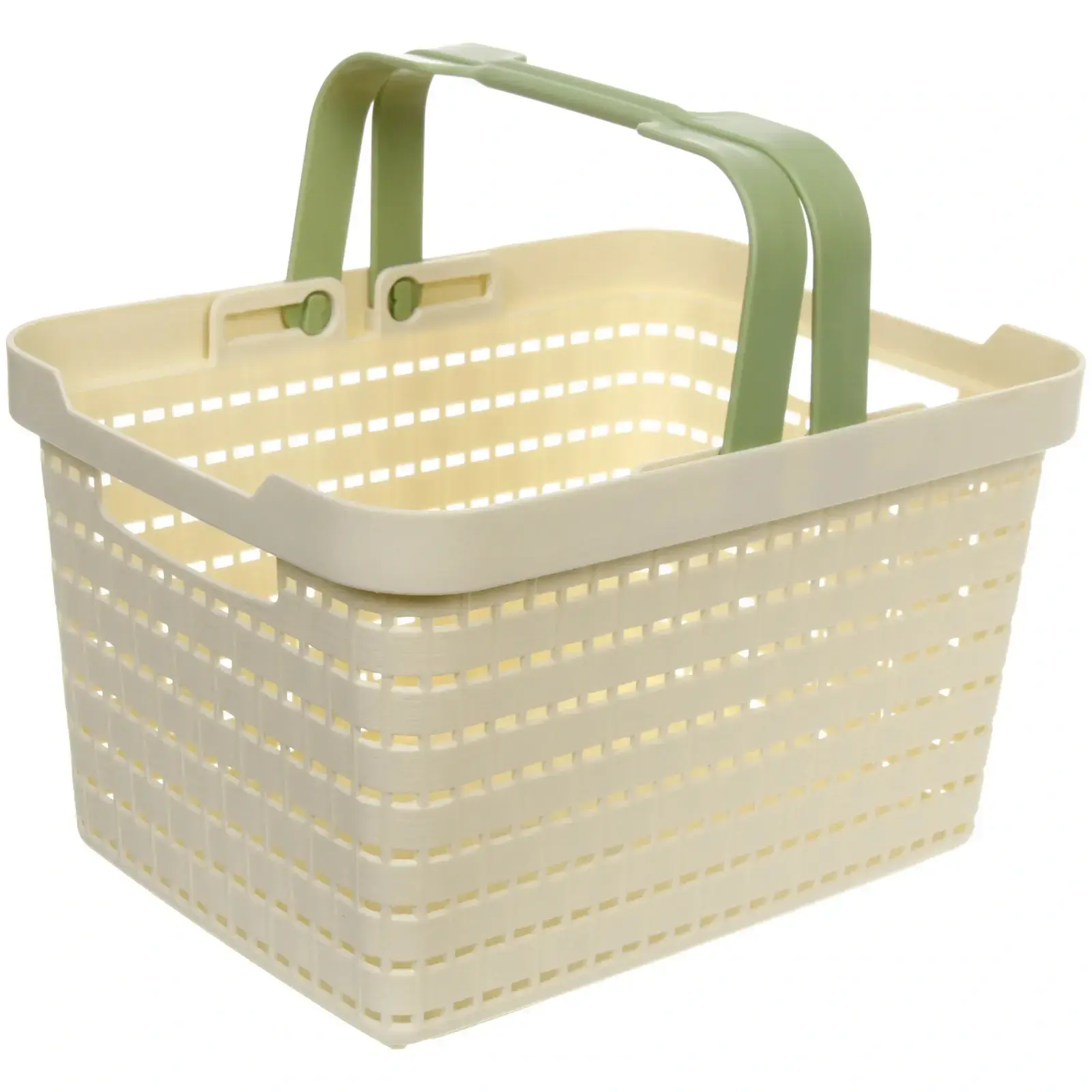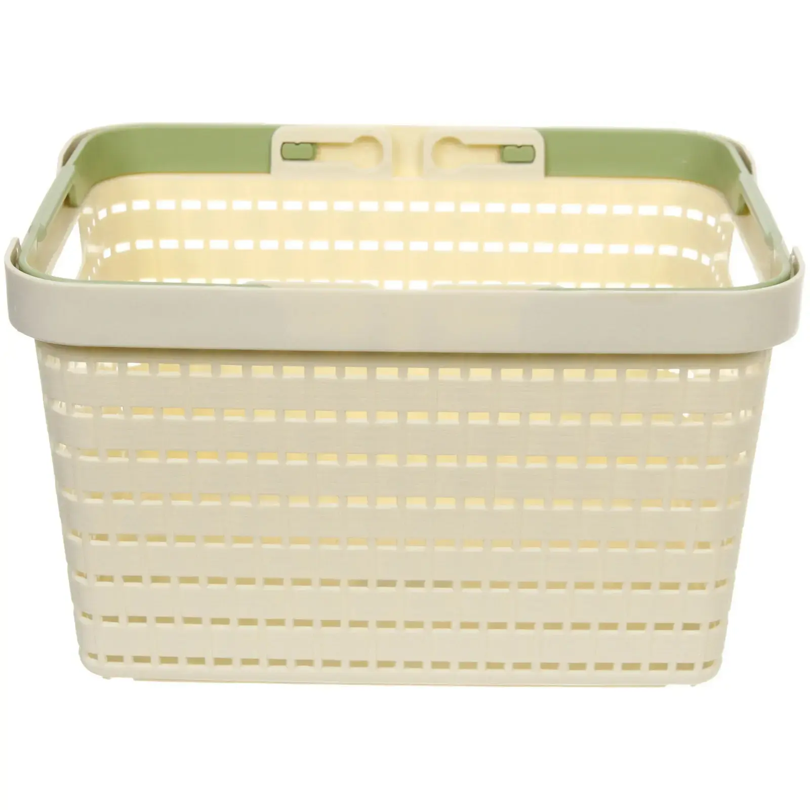 Корзинка изготовлена из качественного пластика, что делает ее устойчивой к повреждениям и легкой в уходе. Ее размеры 22.8*31*18.2 см идеально подходят для хранения мелочей, а бежевый цвет с зелеными ручками добавляет яркости и свежести в ваш дом. Не упустите возможность сделать вашу жизнь более организованной и комфортной с корзинкой «ПАЛЕРМО»!