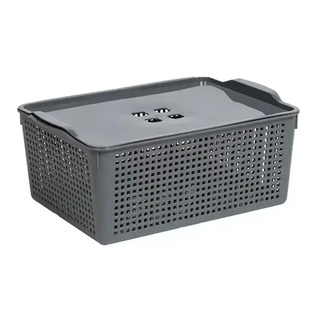 Корзинка для хранения "Лофт" 13л, серый, с крышкой, 395х168мм