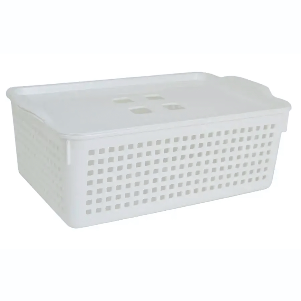 Корзина пластиковая с крышкой для удобного хранения, объем 3,8 л, 29.5х10.5 см, белый прочный пластик