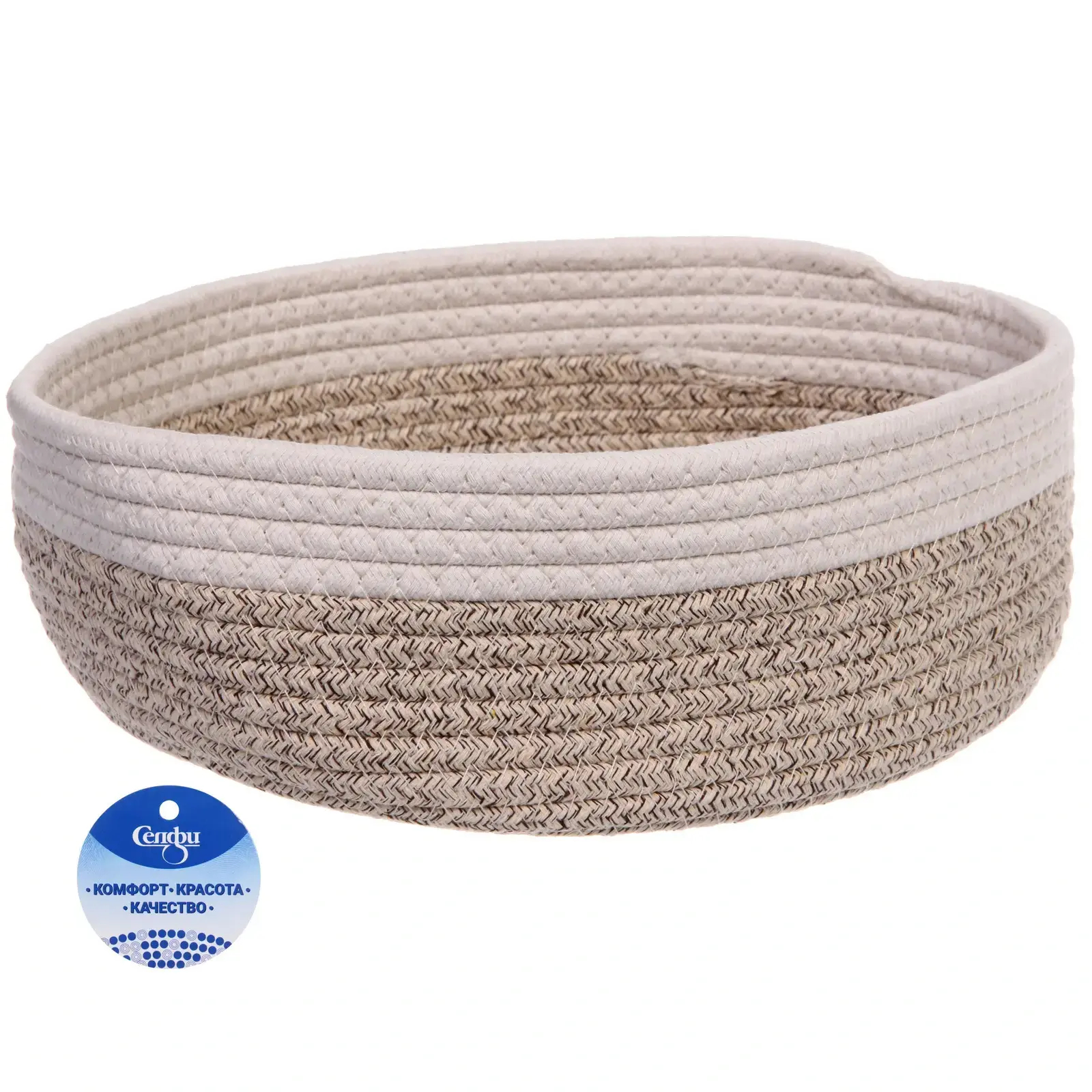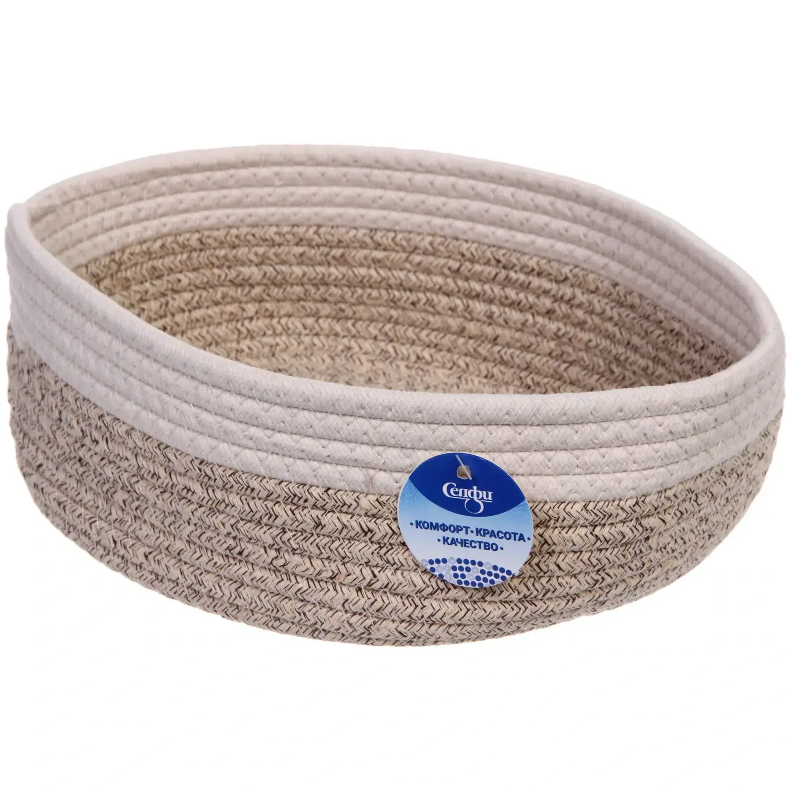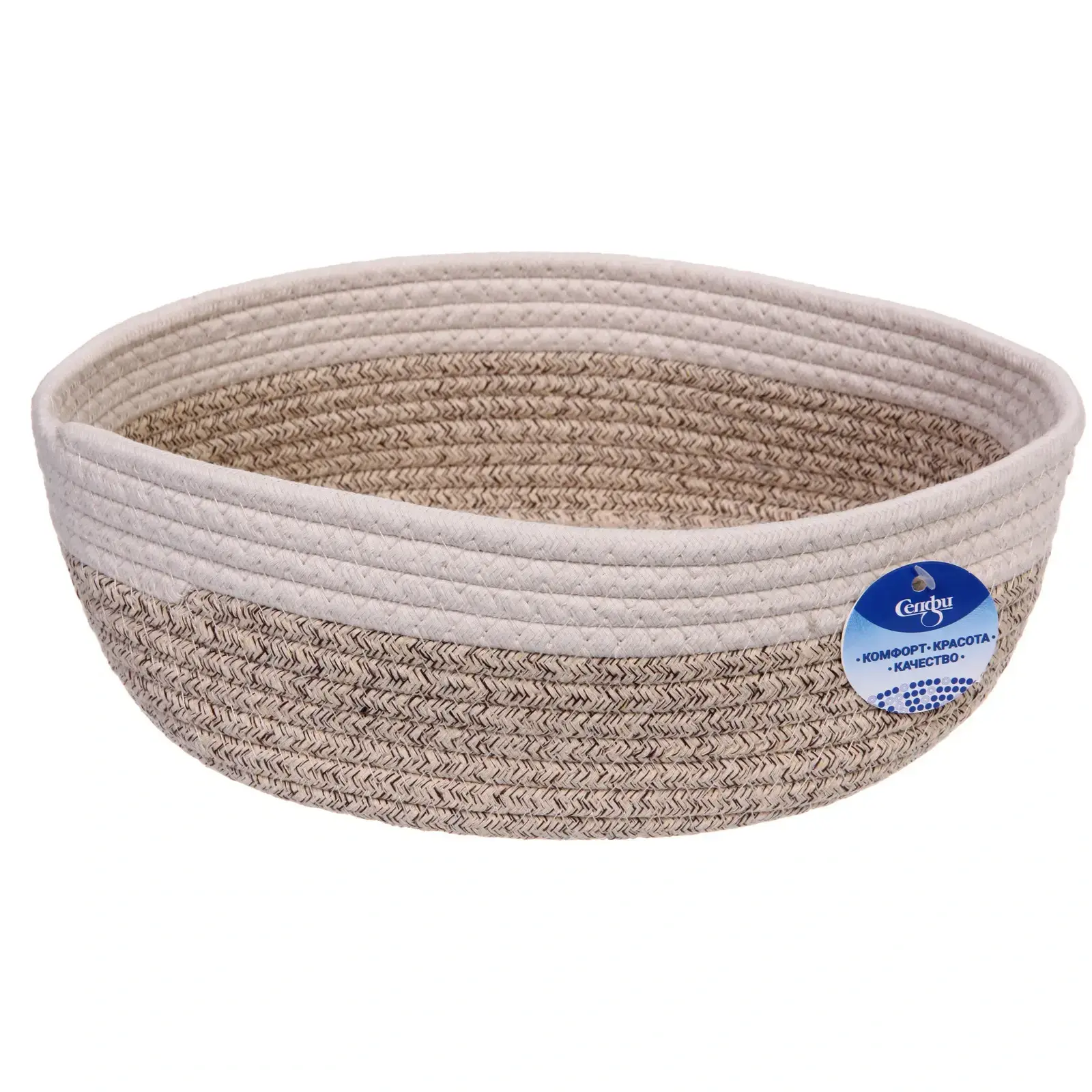 Корзинка имеет размеры 30х25х10 см и выполнена в бежевом и белом цветах, что позволяет ей гармонично сочетаться с любыми оттенками в интерьере. Овальная форма и аккуратные линии делают её стильной и удобной в использовании. Не упустите возможность добавить в ваш дом этот практичный и красивый аксессуар!