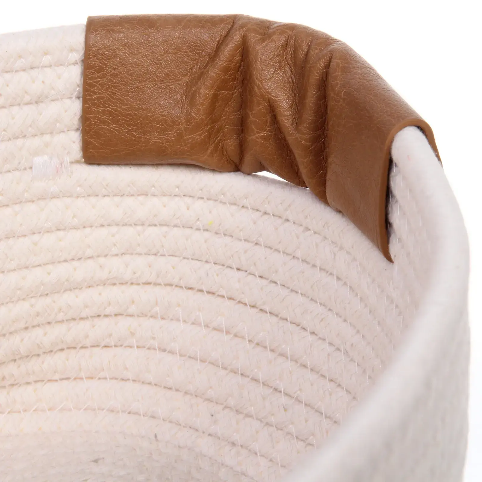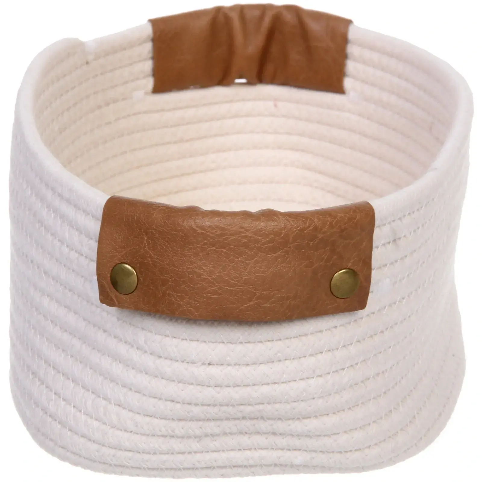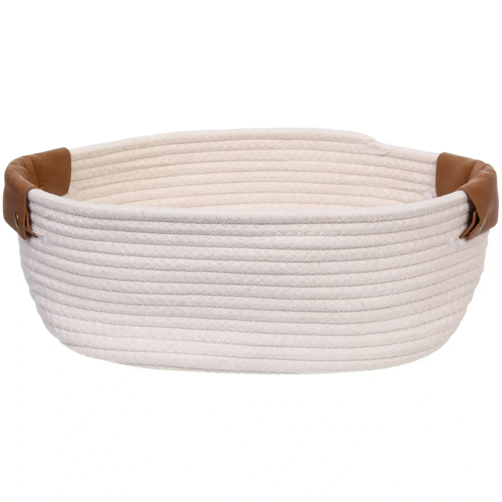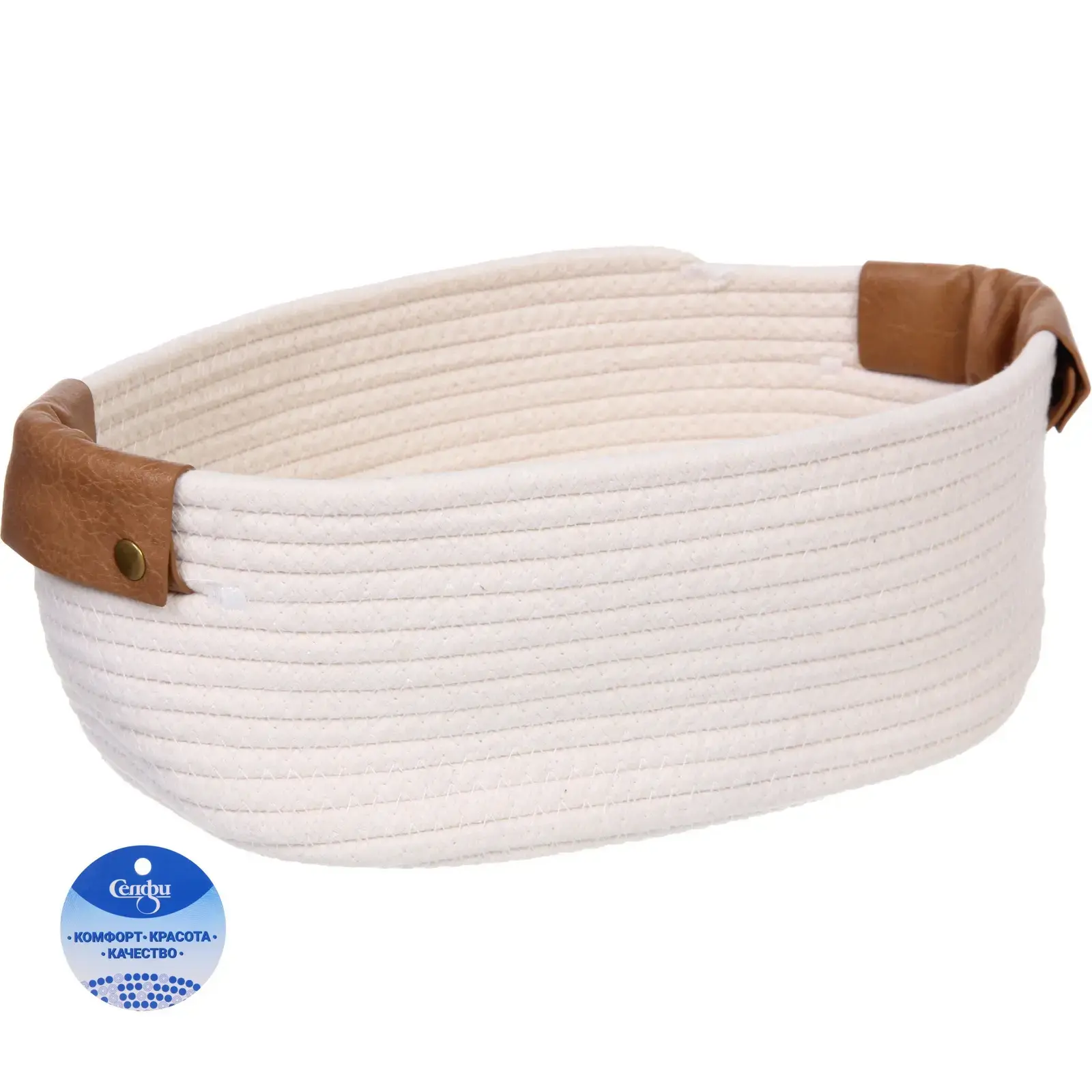 Корзинка имеет овальную форму и размеры 30х21х14 см, что позволяет удобно размещать её в любом уголке вашего дома. Она идеально подходит для хранения игрушек, одежды, книг или других мелочей, которые требуют организации. Благодаря ручкам из коричневого материала, имитирующего кожу, корзина легко переносится и перемещается по дому.