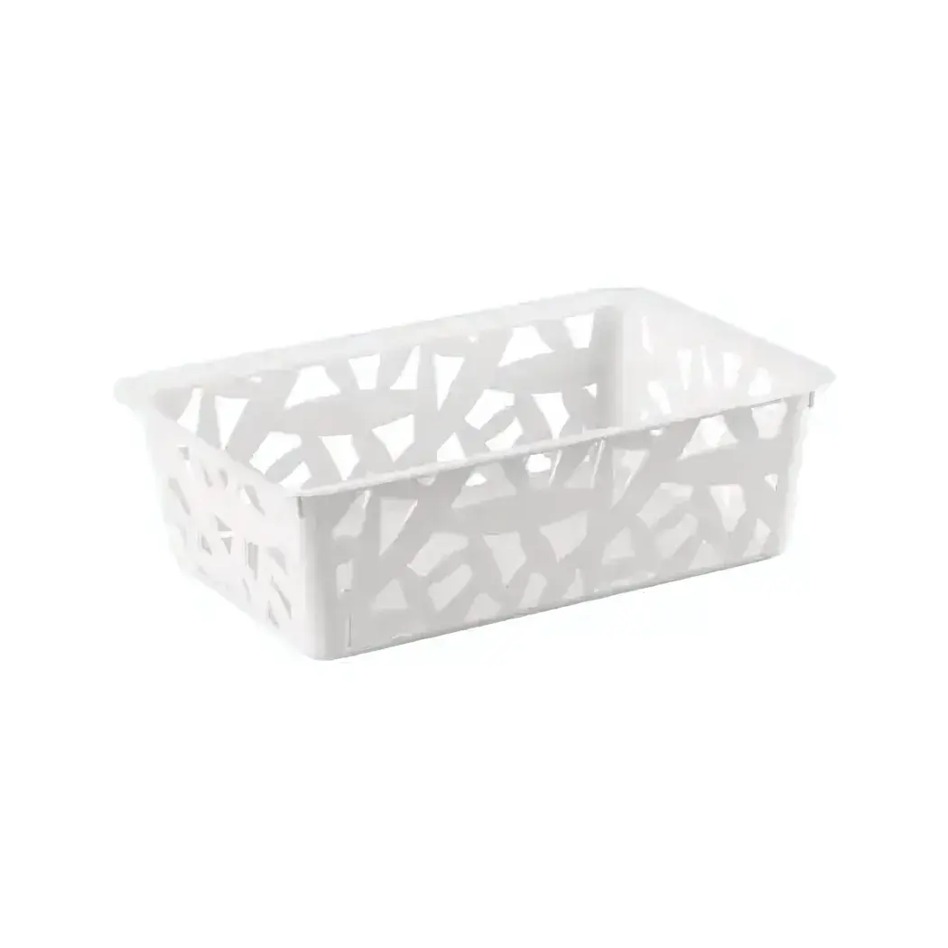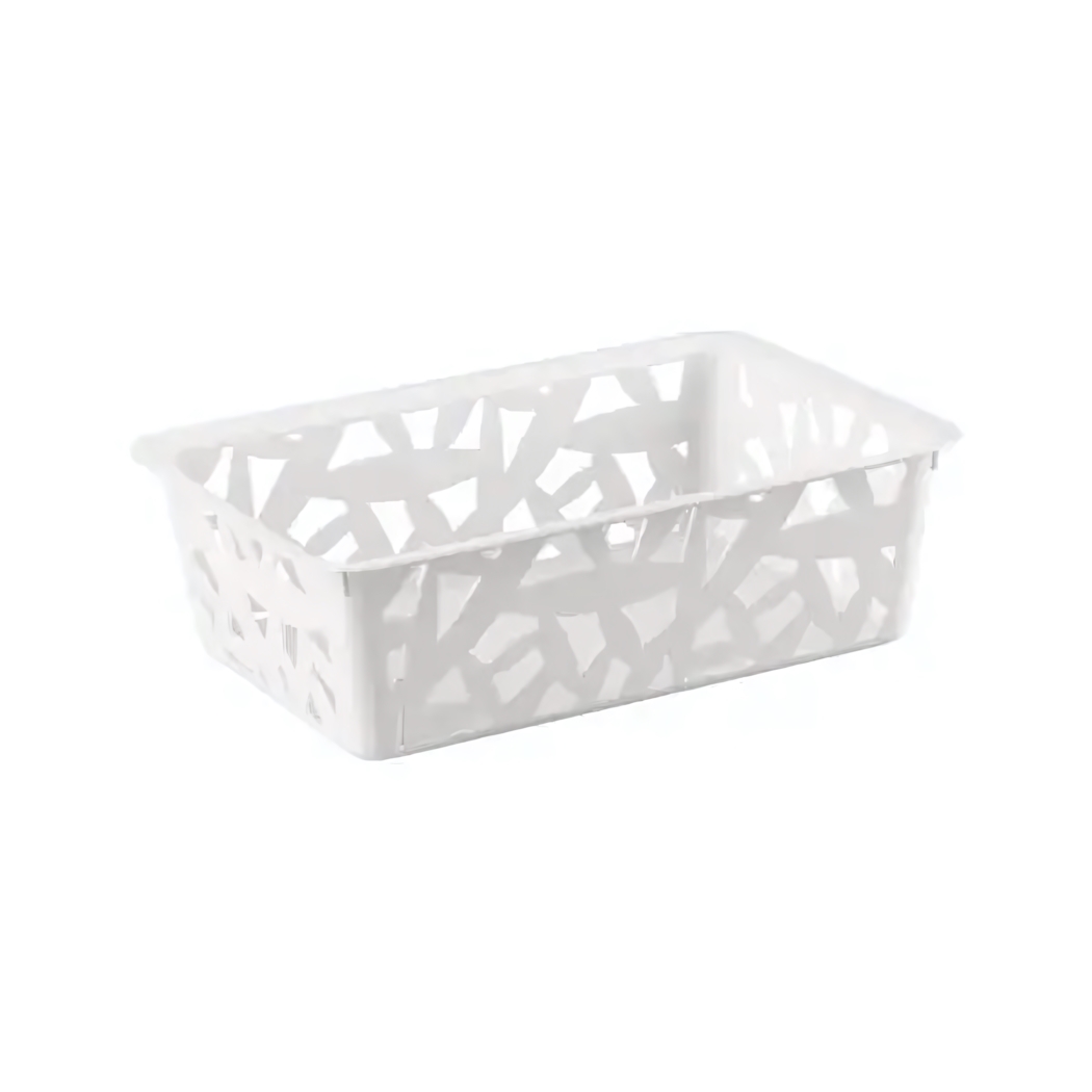 Корзина изготовлена из экологичного пластика, не имеет острых краёв и полностью готова к использованию. Чёткие линии рельефного узора создают эффект плетения, сохраняя при этом все преимущества пластикового изделия. Компактная глубина 6 см позволяет размещать её на узких полках и в ограниченном пространстве.