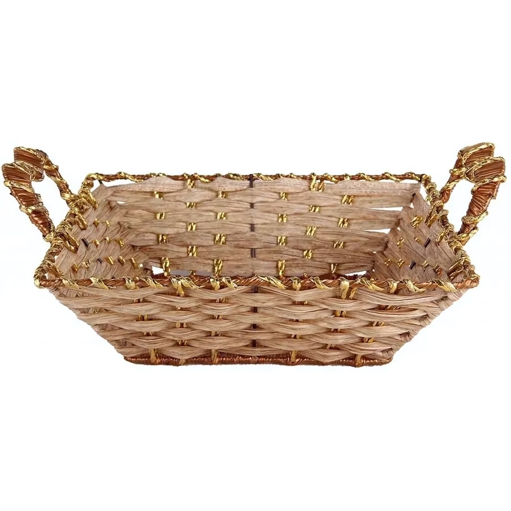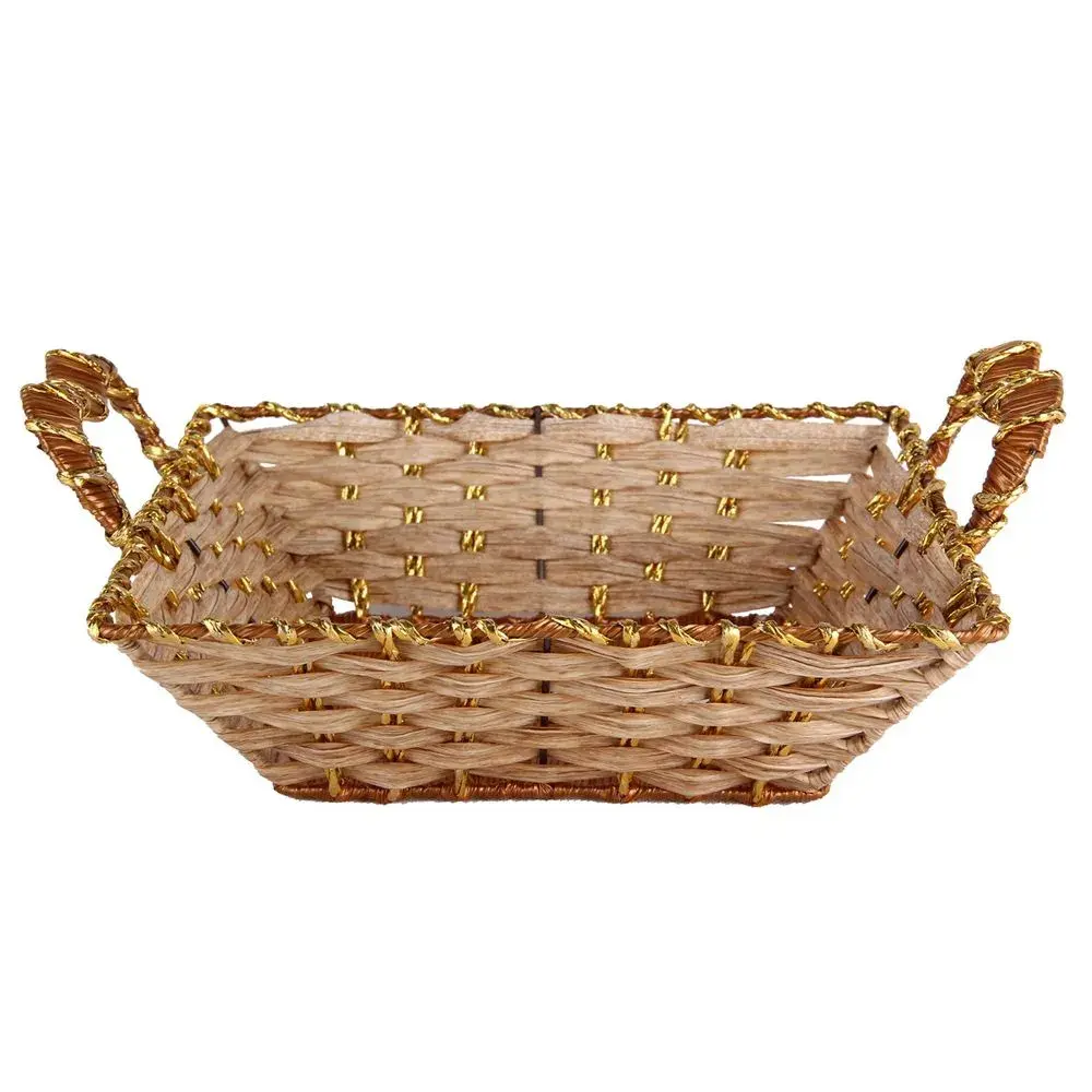 Корзинка универсальная плетеная из лозы с золотой нитью, 26х8.5 см, для хранения и декора