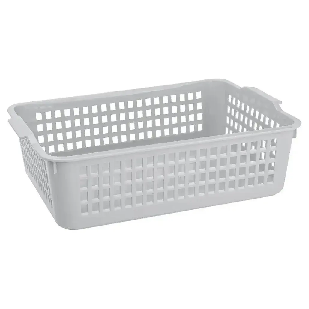 Корзина пластиковая для хранения 310х85 мм, 4,5 л, вентилируемая, цвет в ассортименте (белый, светло-серый)