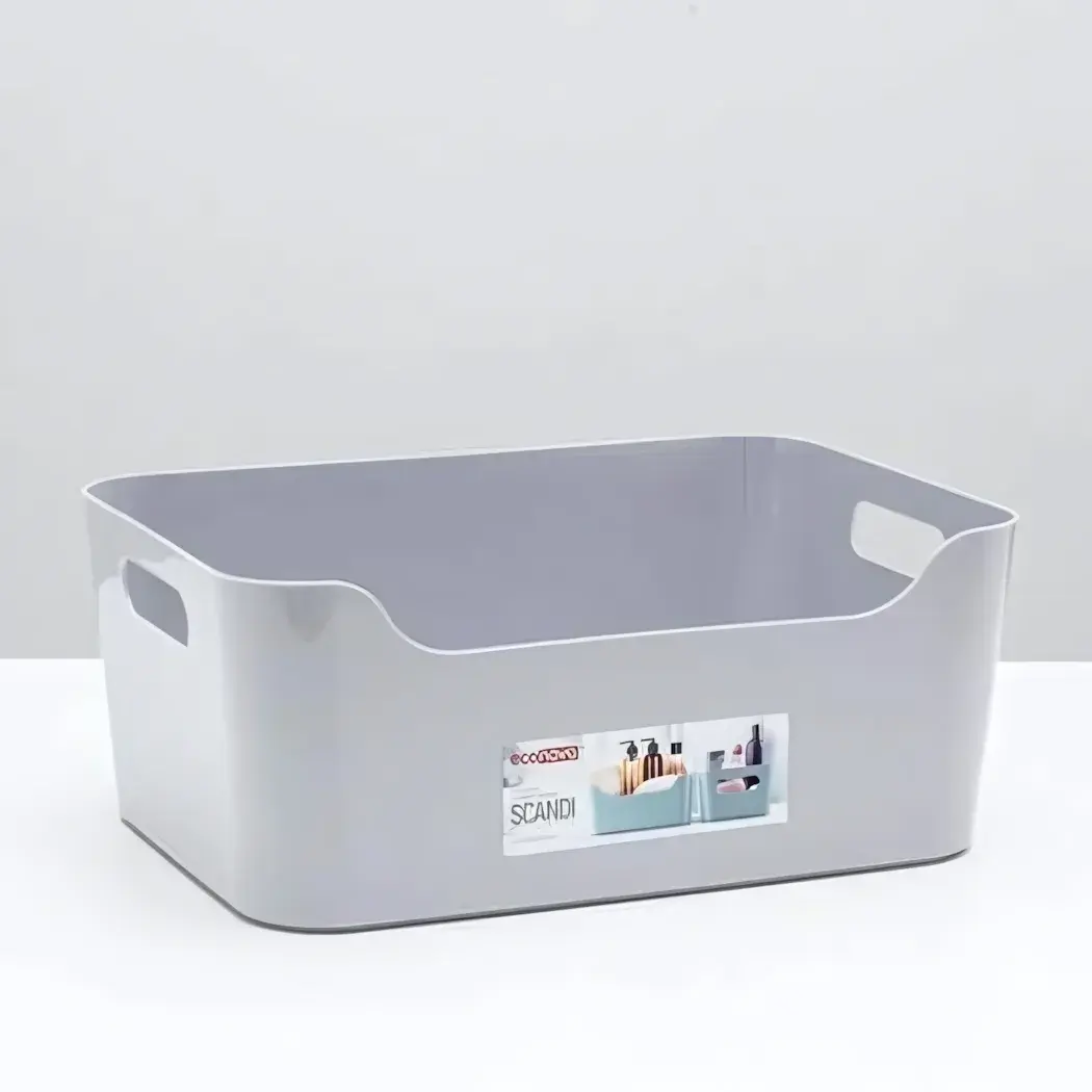 Корзинка изготовлена из качественного пластика, что гарантирует её долговечность и устойчивость к повреждениям. Размеры 34х24х14 см позволяют использовать её в различных помещениях, а светло-серый цвет легко вписывается в любой интерьер. Не упустите возможность сделать ваш дом более организованным и стильным с корзинкой «SCANDI»!