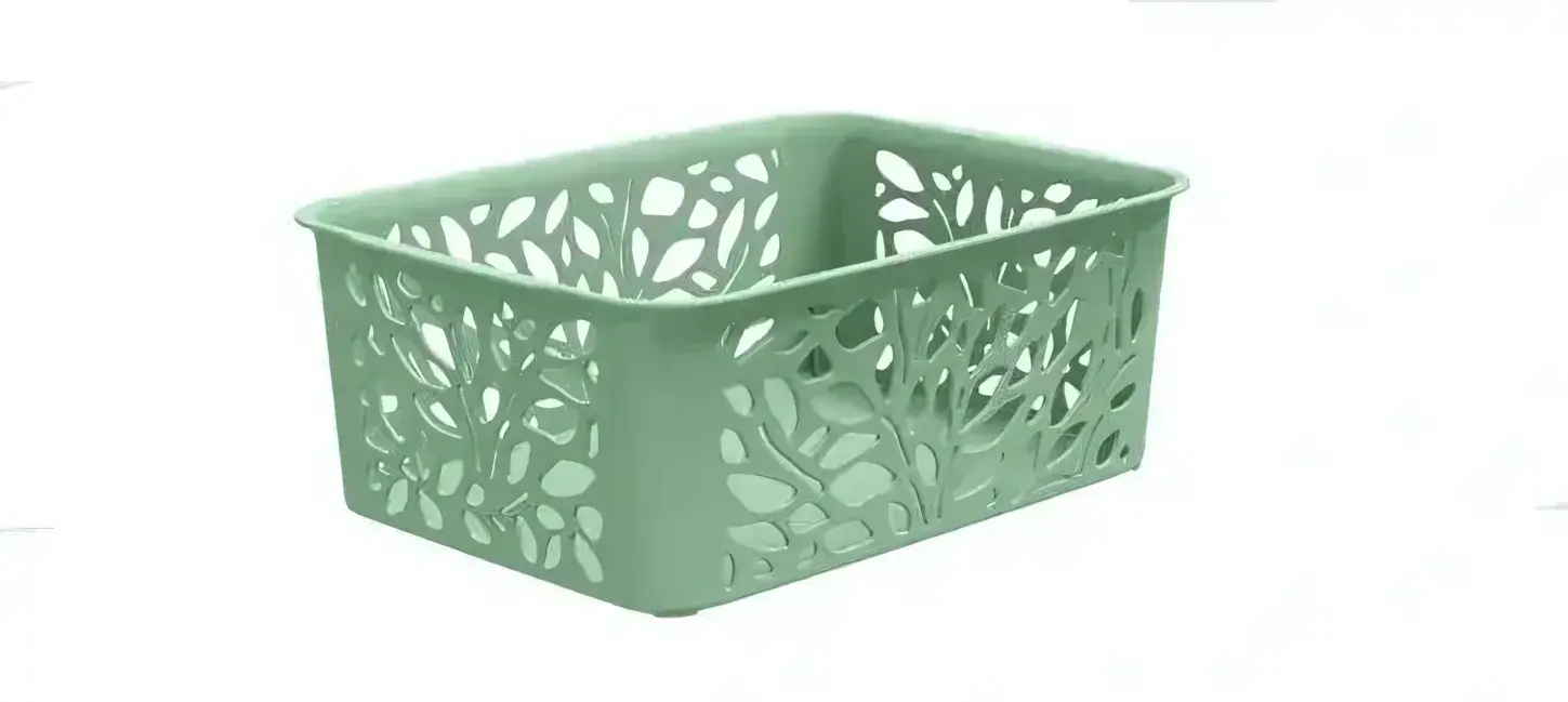 Корзинка идеально подходит для хранения мелочей на кухне, в ванной или в детской комнате. Благодаря высоким боковым стенкам и рельефному дизайну с вырезами в виде листьев, вы сможете легко видеть содержимое и быстро находить нужные вещи. Легкий и прочный пластиковый материал обеспечивает долговечность и простоту в уходе.
