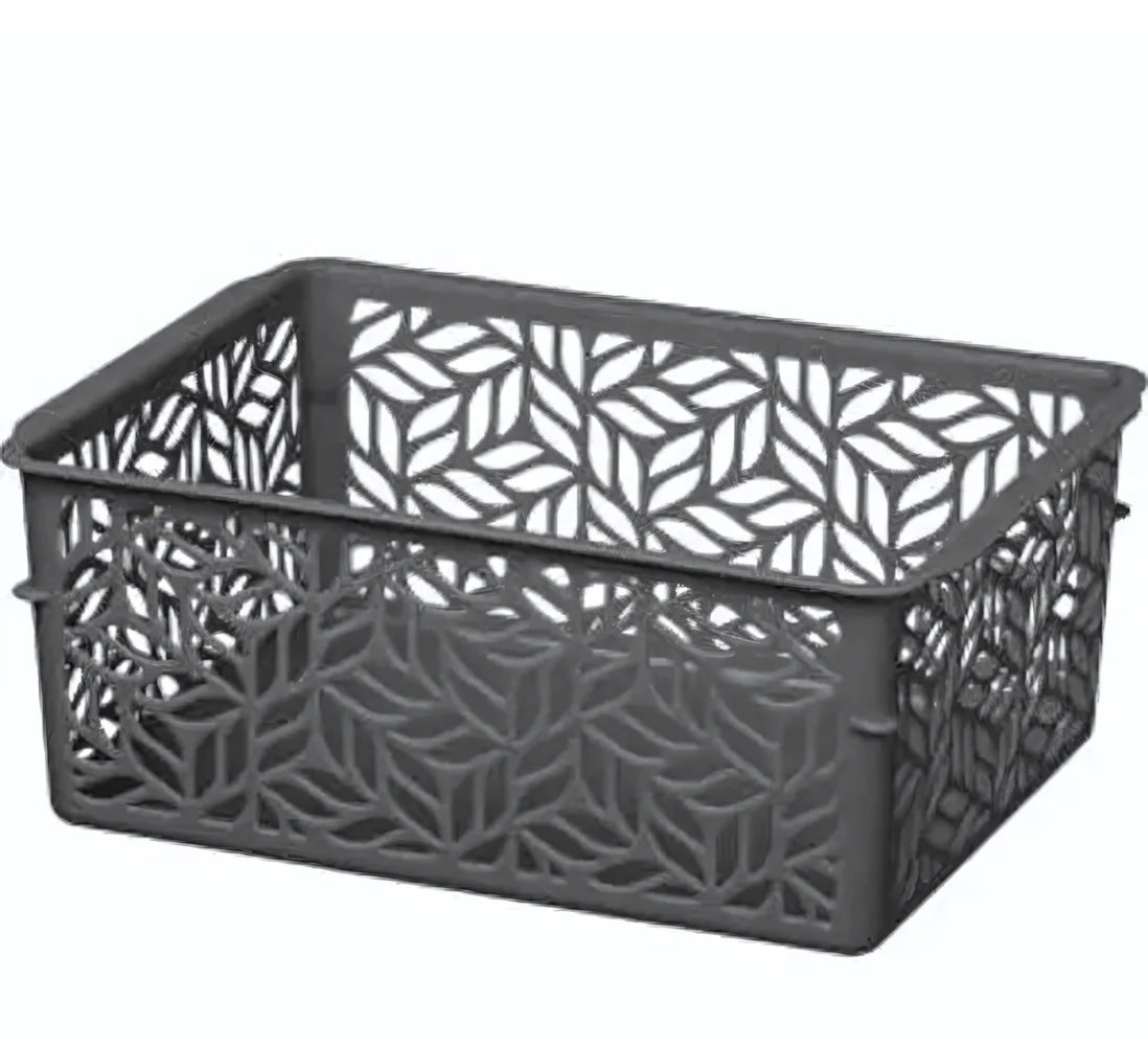 Объём 1,4 л, материал – пластик, цвет – серый. Размеры позволяют использовать корзину в стандартных ящиках и на полках без дополнительных приспособлений. Благодаря продуманному дизайну она сочетает в себе надёжность и визуальную лёгкость, создавая ощущение порядка в вашем доме.