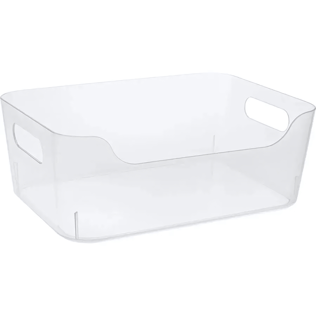 Прозрачный пластик позволяет быстро находить нужные предметы без необходимости перебирать содержимое. Материал устойчив к влаге и перепадам температур — можно использовать в ванной комнате или на балконе.