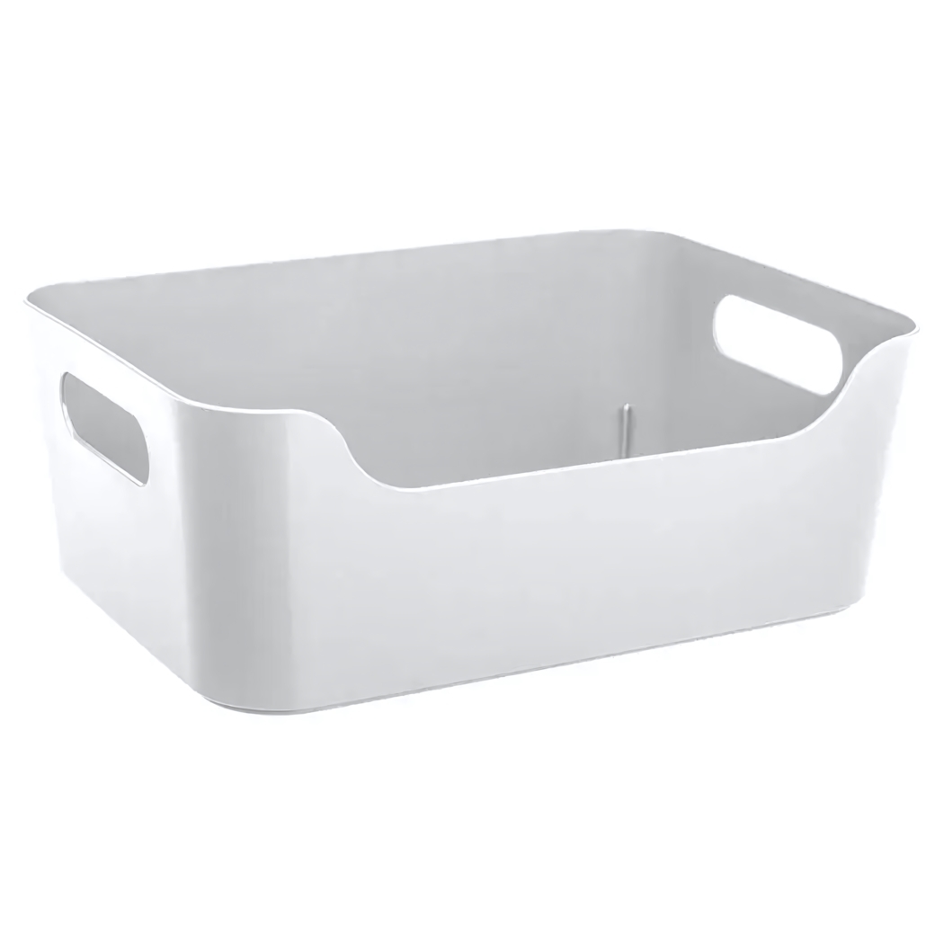 Практичное решение для хранения вещей в доме, офисе или на даче. Прочная конструкция из качественного пластика выдерживает нагрузки до 10 кг, а эргономичные ручки обеспечивают комфортную переноску. Идеально впишется в интерьер в стиле сканди благодаря лаконичному дизайну и нейтральному цвету.