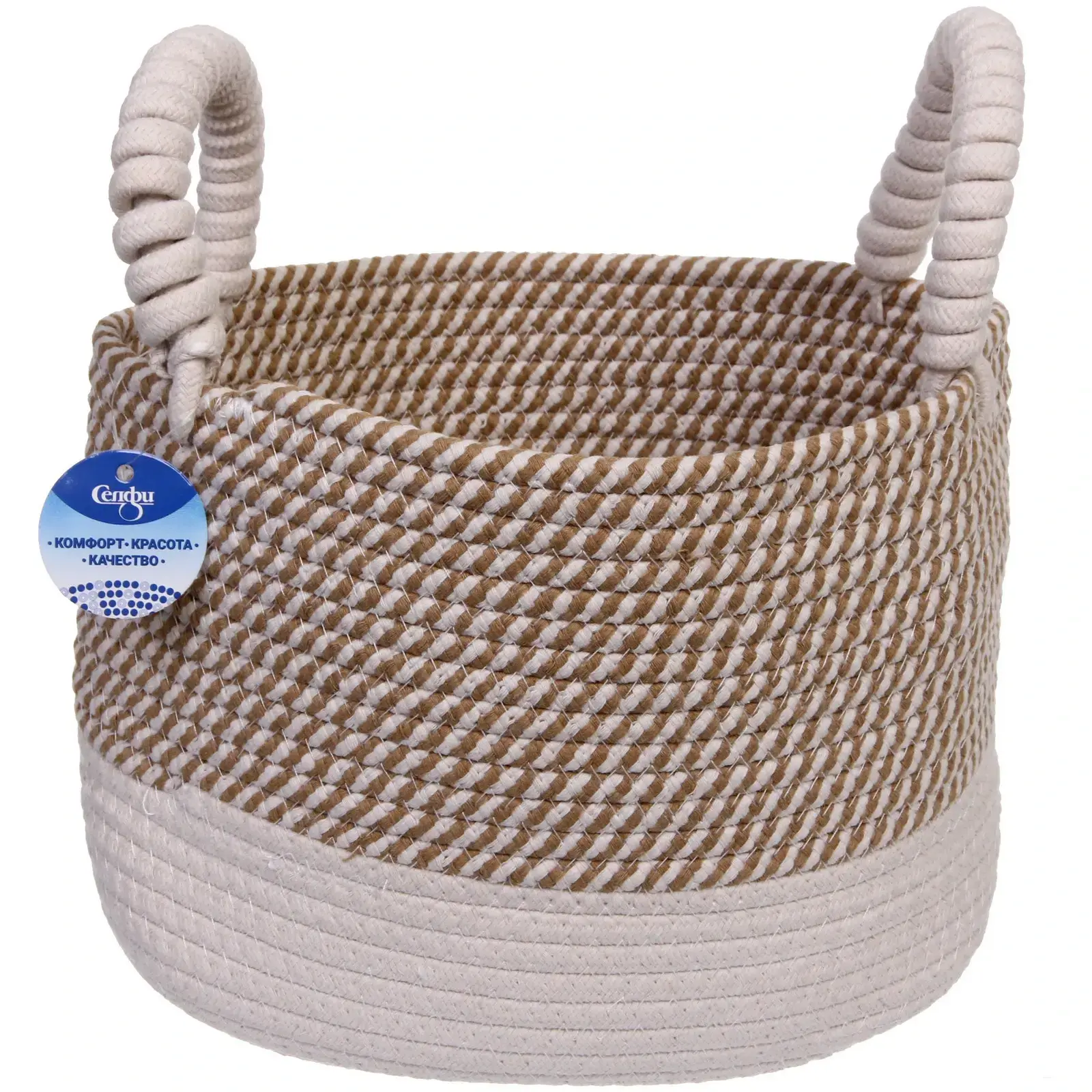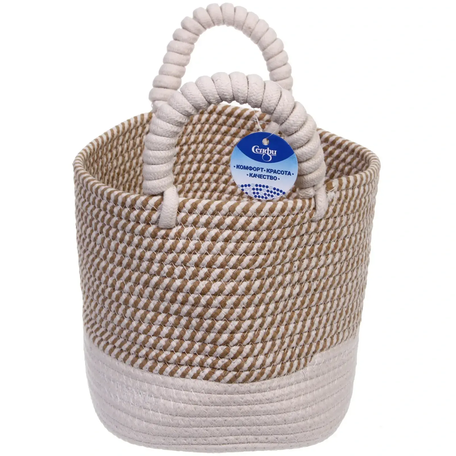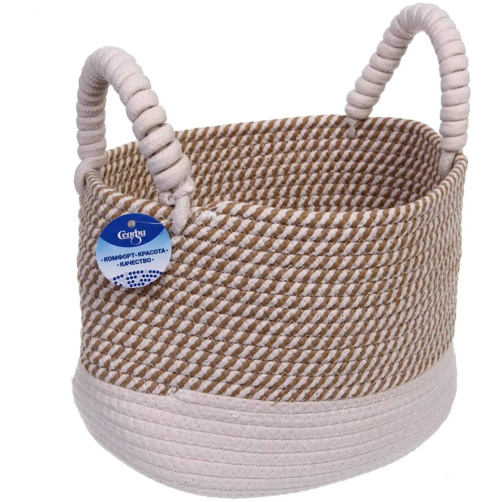 Корзинка интерьерная вязаная «ТРИГОЙЯ» с ручками, цвет беж/белый, 30×22×20 см, полиэстер и дерево