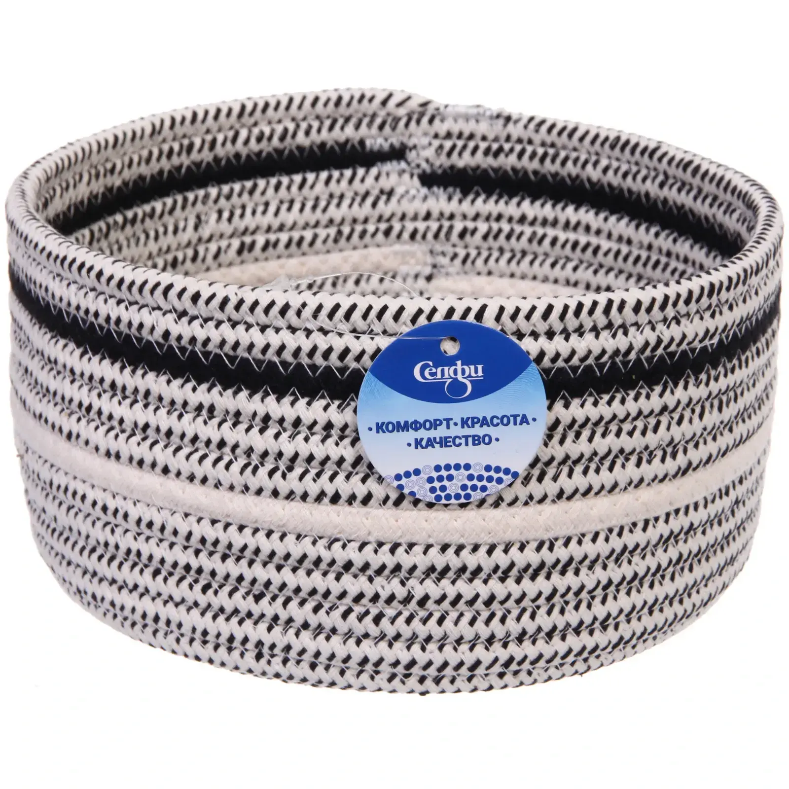 Создайте порядок в доме с вязаной интерьерной корзинкой "ВАЛЬТА". Её черно-белый дизайн впишется в любой интерьер, а компактный размер (21х11см) позволит разместить её даже на небольшой полке.