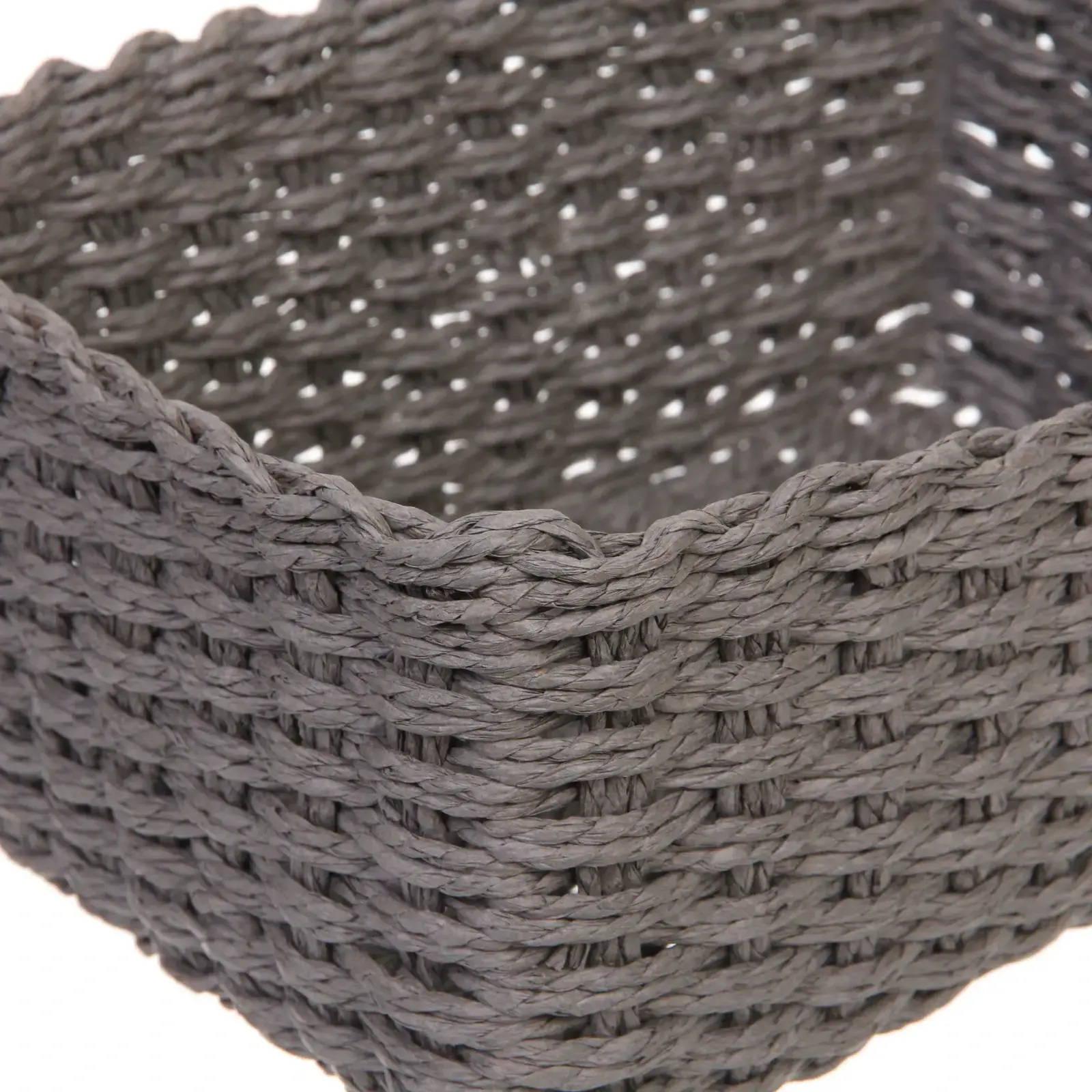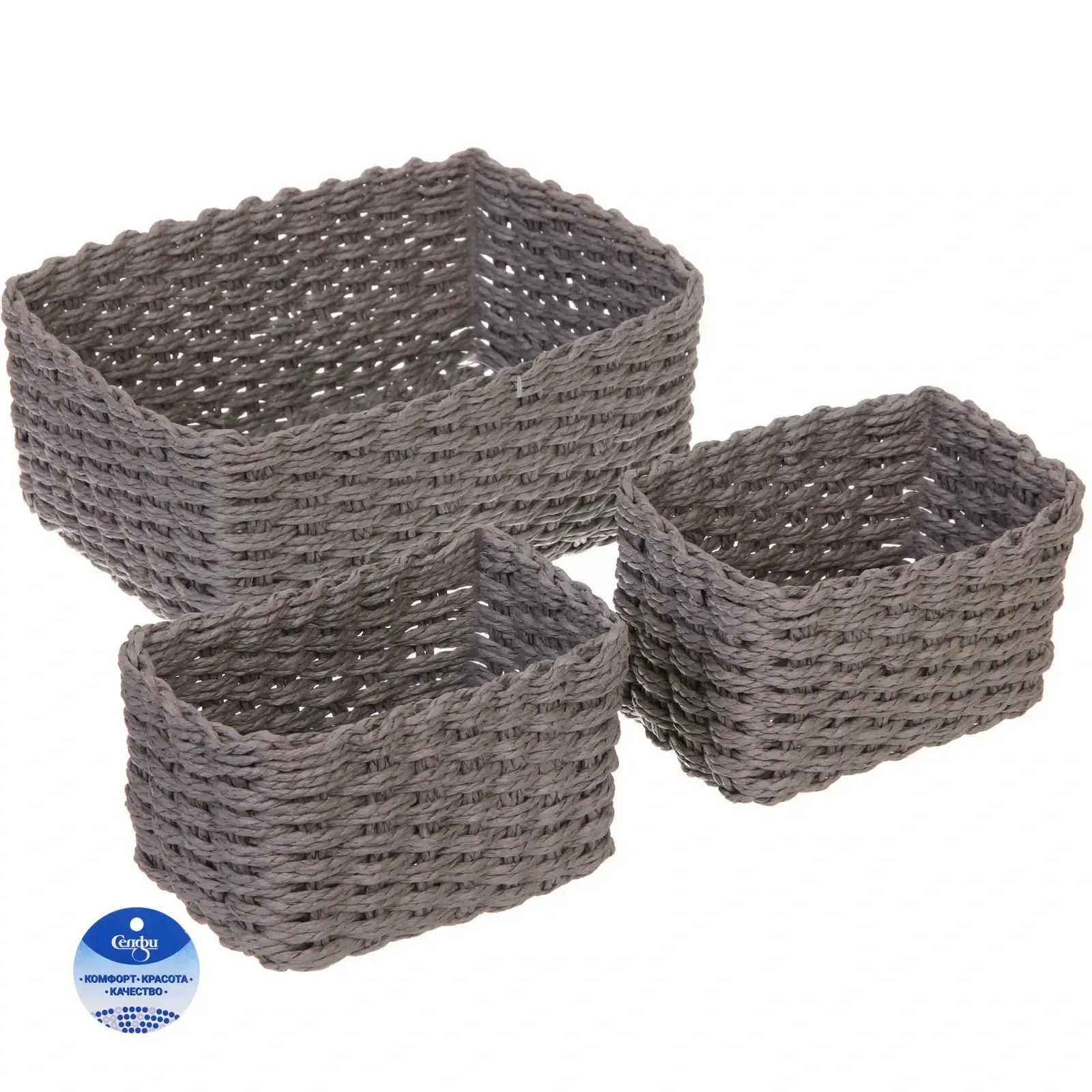 Бумажный материал, имитирующий натуральное плетение, сочетает в себе прочность и экологичность. Разные размеры (16*11*10см, 16*11*10см, 25*18*11,5см) позволяют эффективно использовать пространство и хранить предметы различных габаритов.