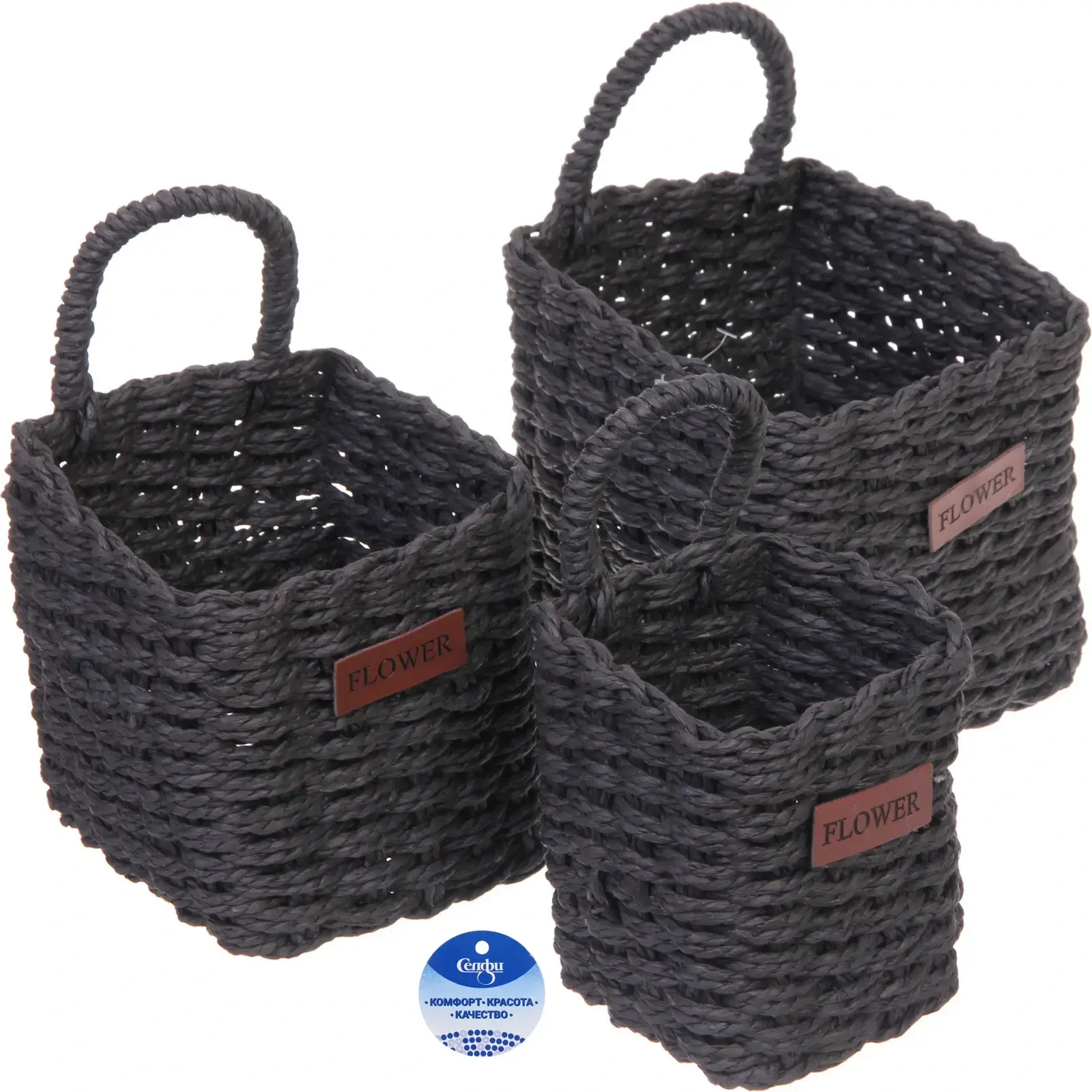 Корзинки выполнены в черном цвете и имеют размеры: 12х11 см, 15х14 см и 16х17 см. Они изготовлены из бумаги, что делает их легкими и удобными в использовании. Каждая корзина оснащена ручками, что позволяет легко их переносить и перемещать по дому. Эти корзинки не только функциональны, но и станут стильным акцентом в вашем интерьере.