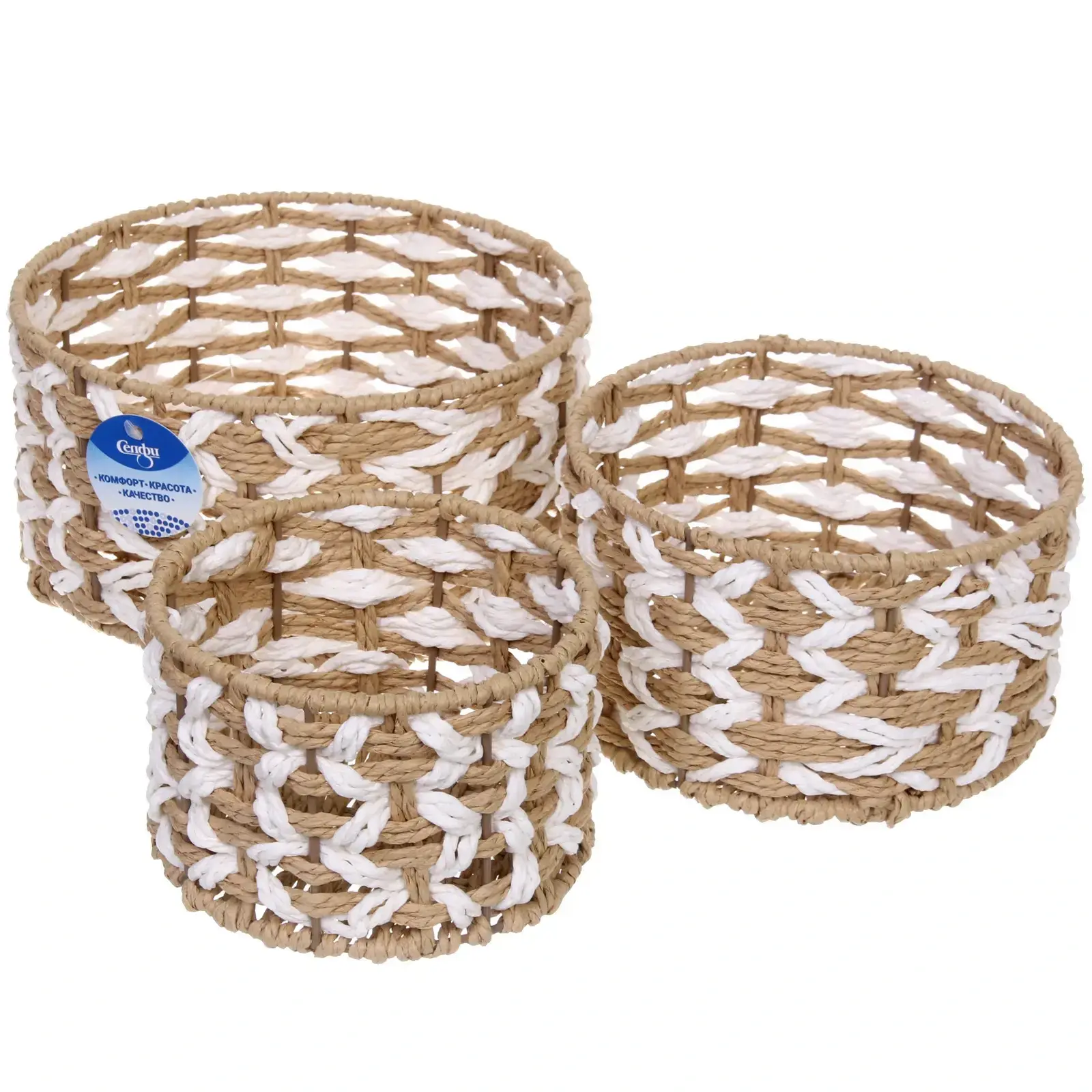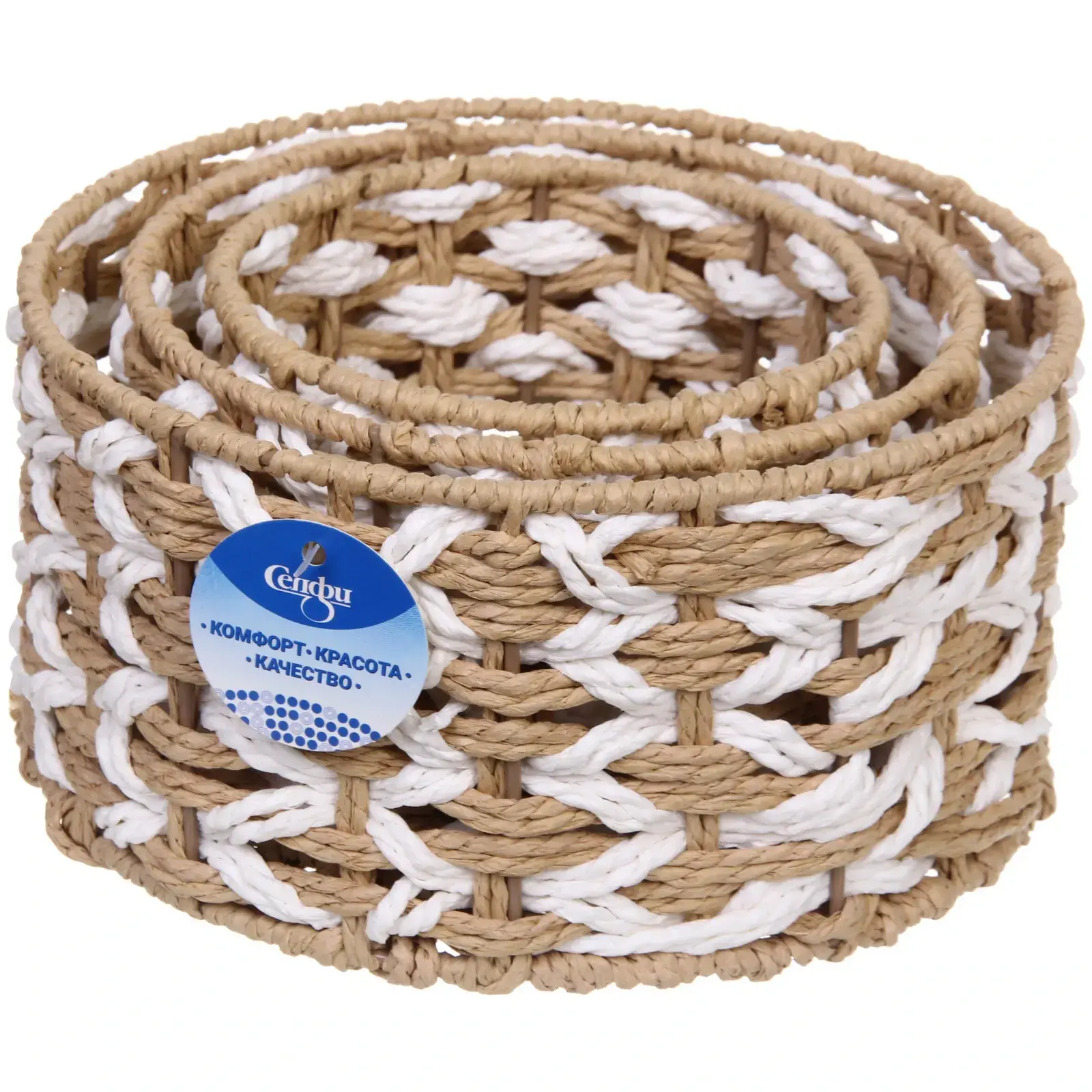 - Комплект из трех корзин разных размеров позволяет эффективно использовать пространство.