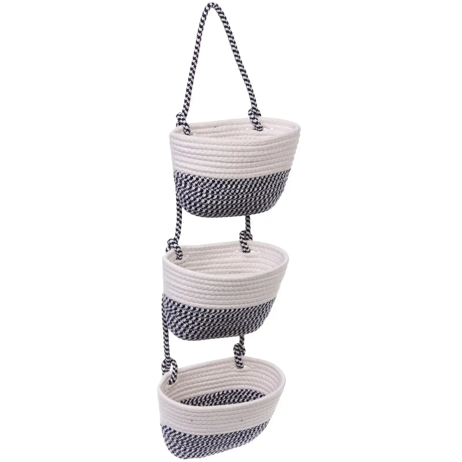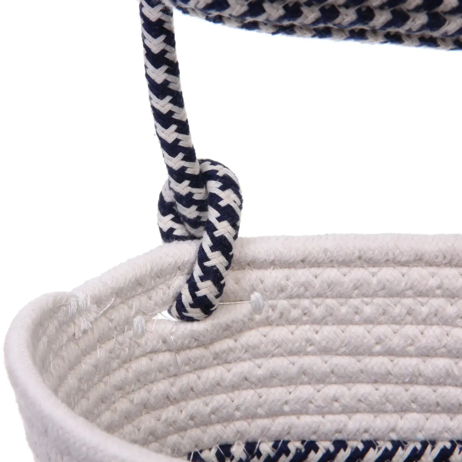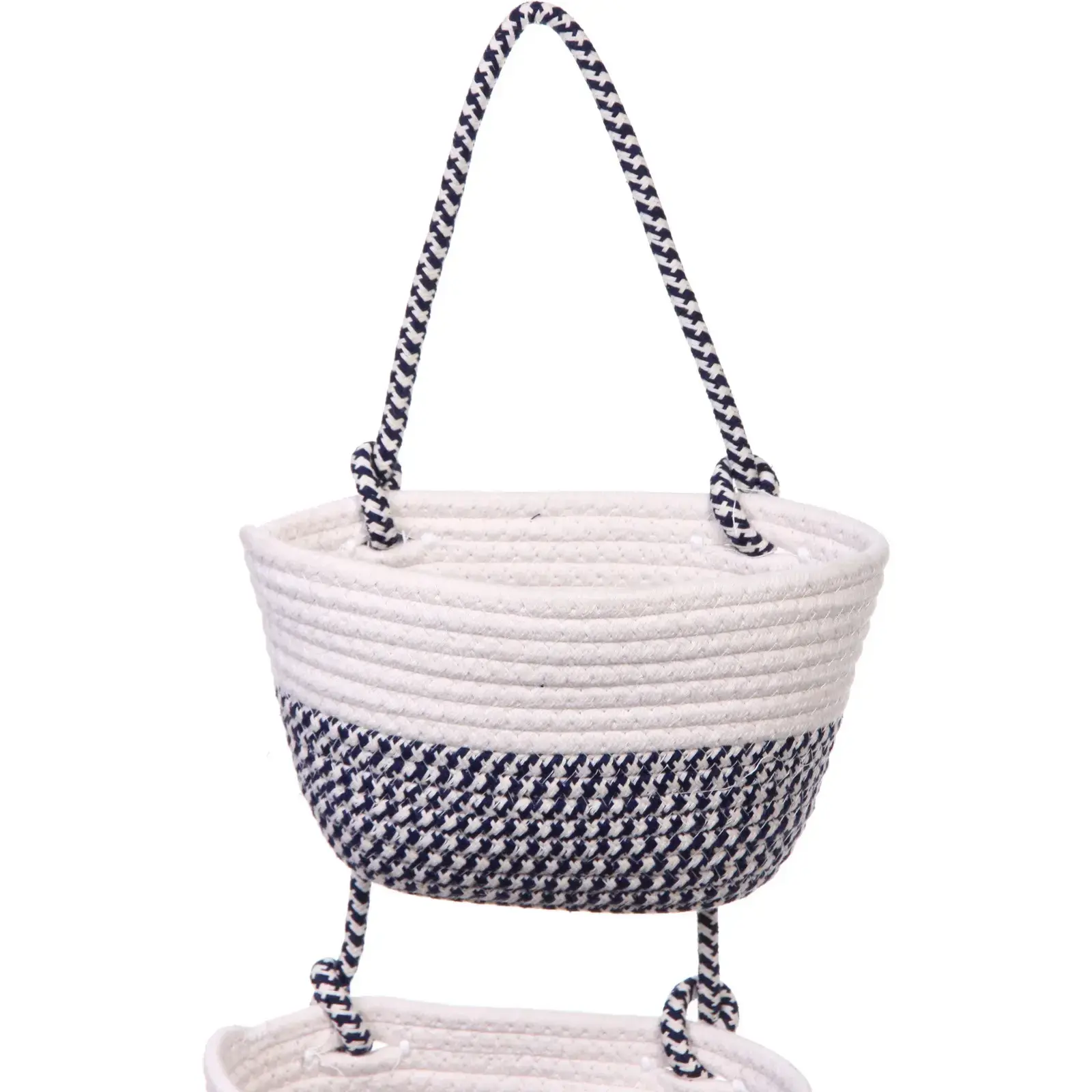 Эта стильная подвесная корзина станет идеальным решением для хранения и организации ваших вещей. Сочетание белого и серо-синего цветов придаст вашему интерьеру уют и гармонию. Корзина выполнена вручную, что гарантирует высокое качество и уникальность каждого изделия.