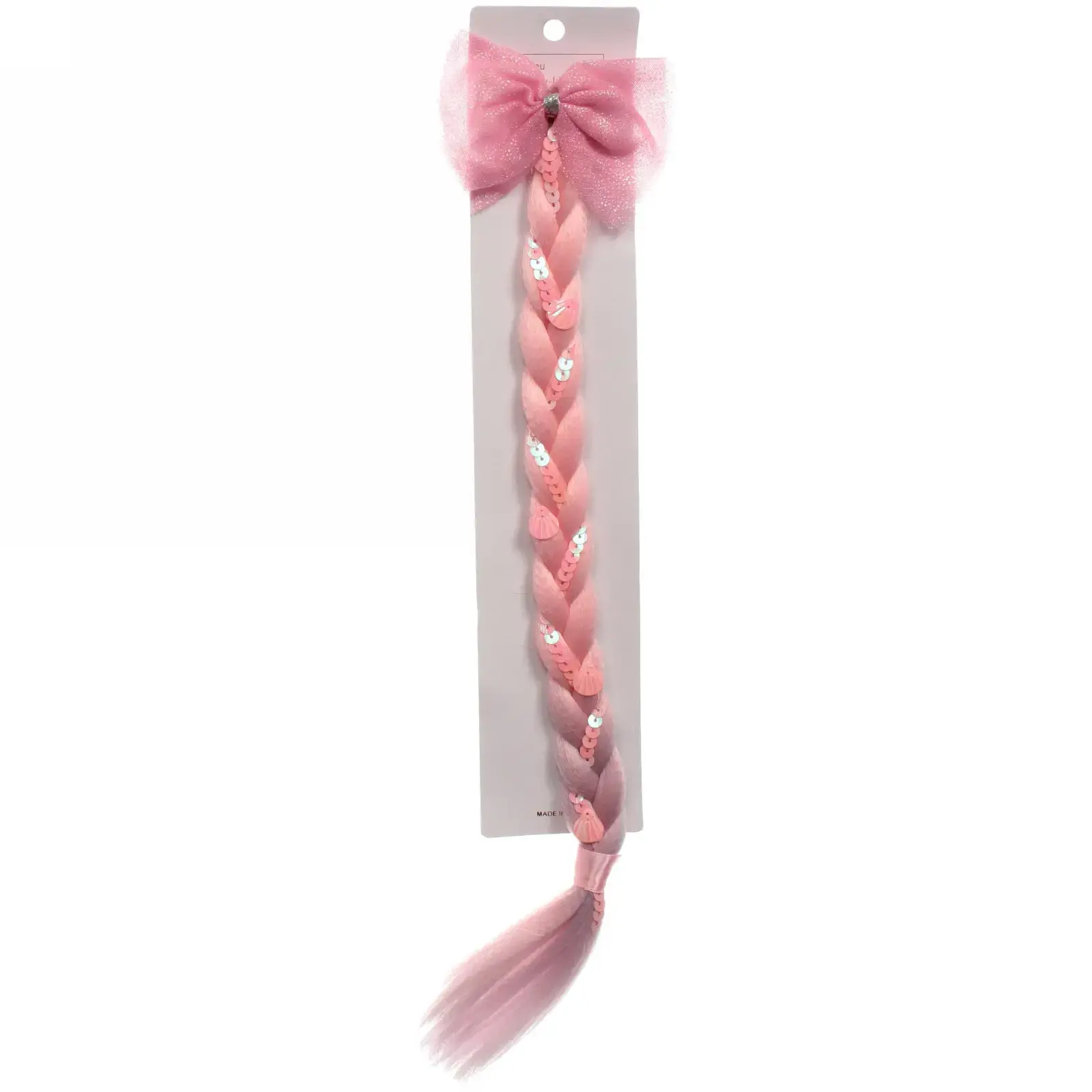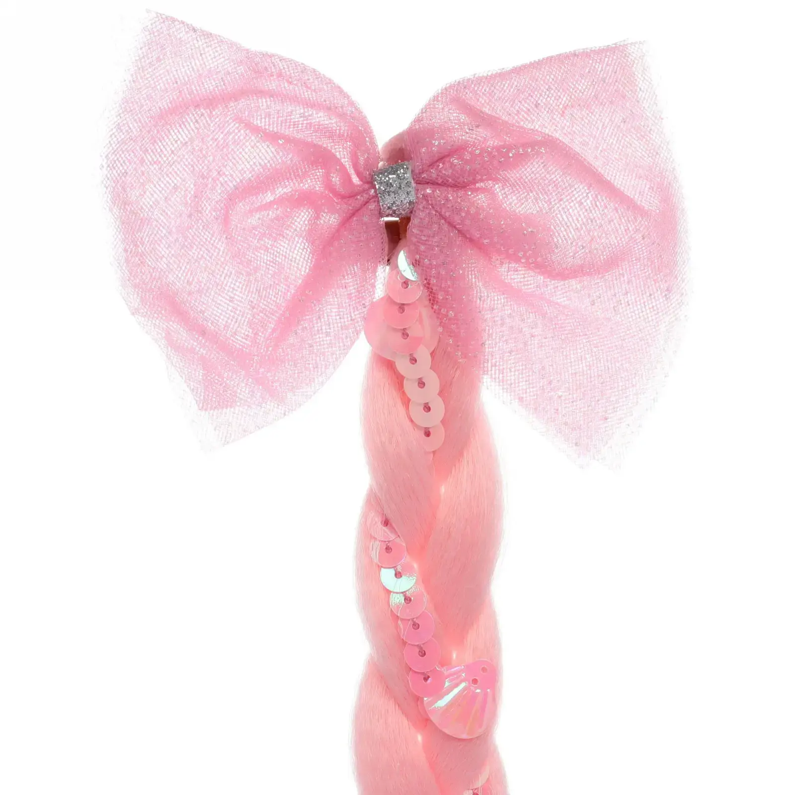 Длина косы составляет 45 см, что позволяет использовать её для создания разнообразных стилей. Материал — нейлон, который легко чистится и сохраняет свою форму. Коса украшена блестящими пайетками и бантом, что делает её не только функциональным, но и стильным аксессуаром.