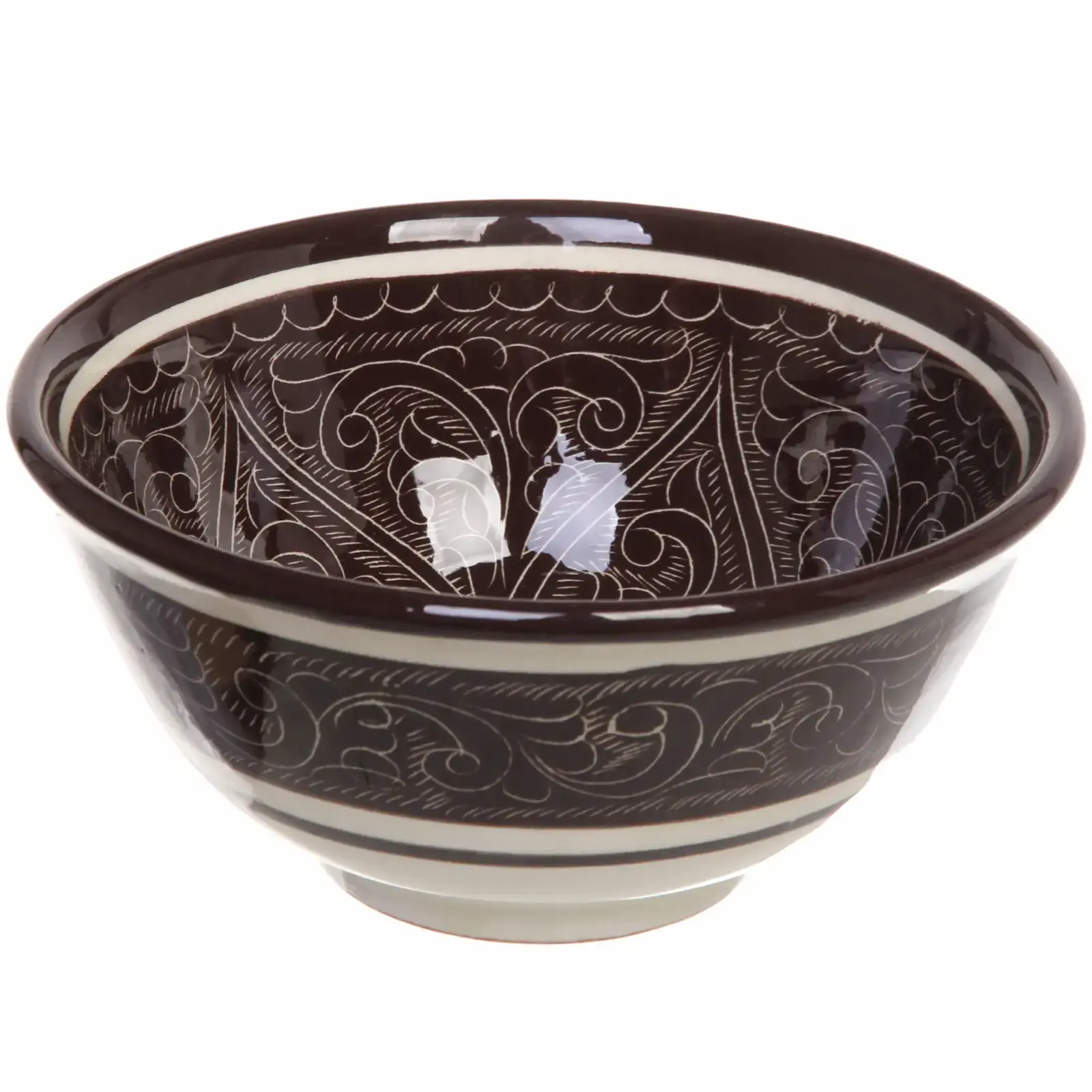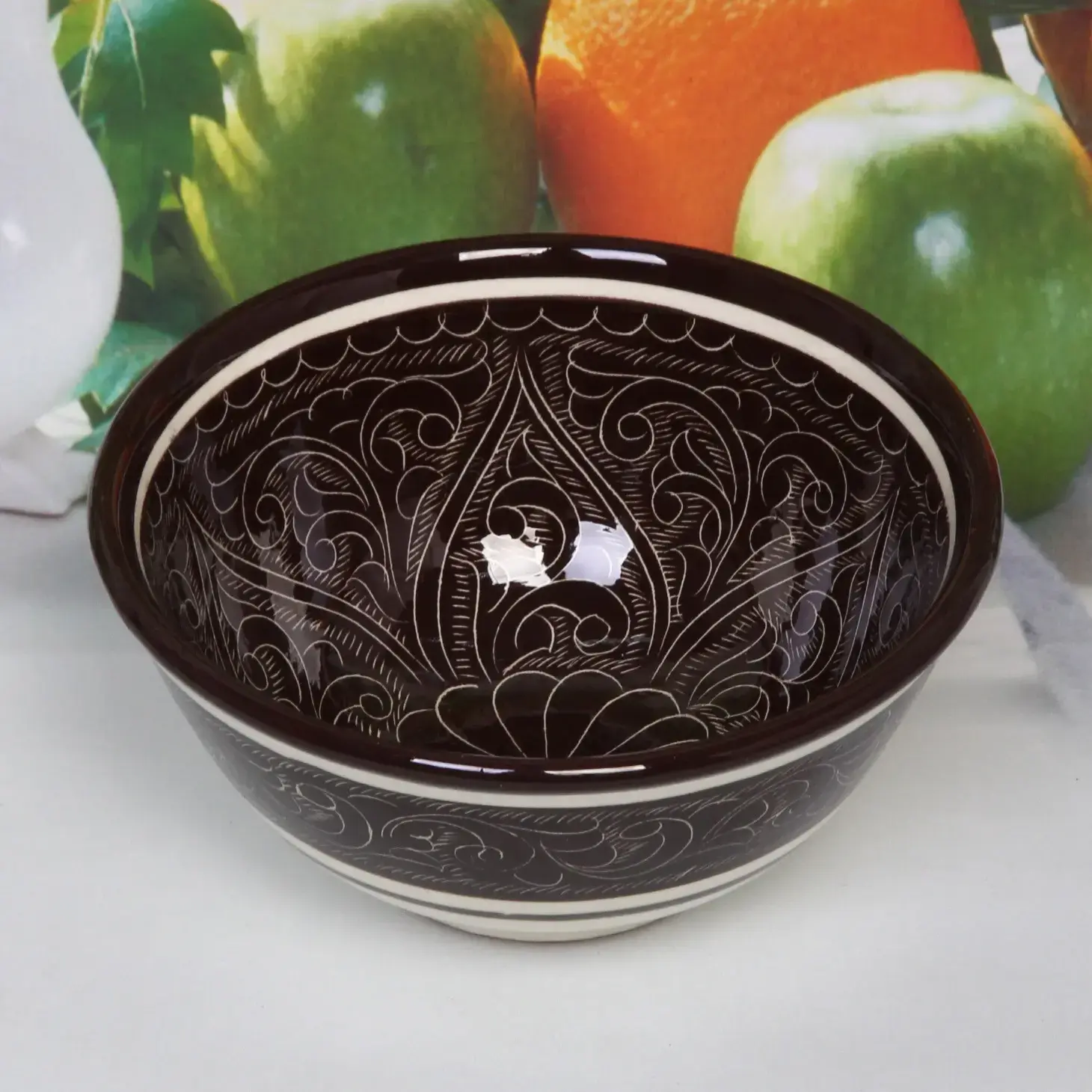 Глубокая тарелка «Риштанская керамика» 15,5 см, ручная роспись, коричневая, для сервировки