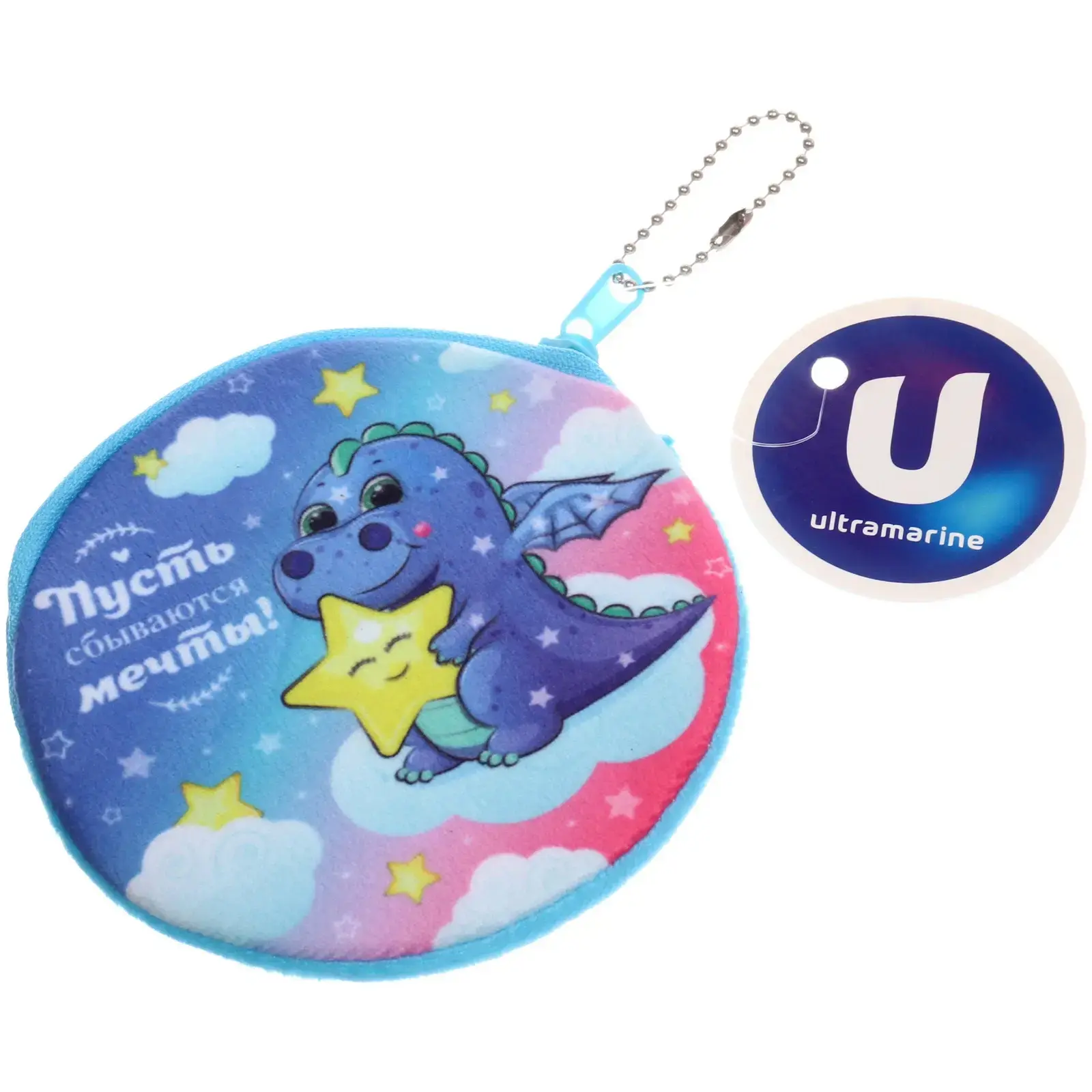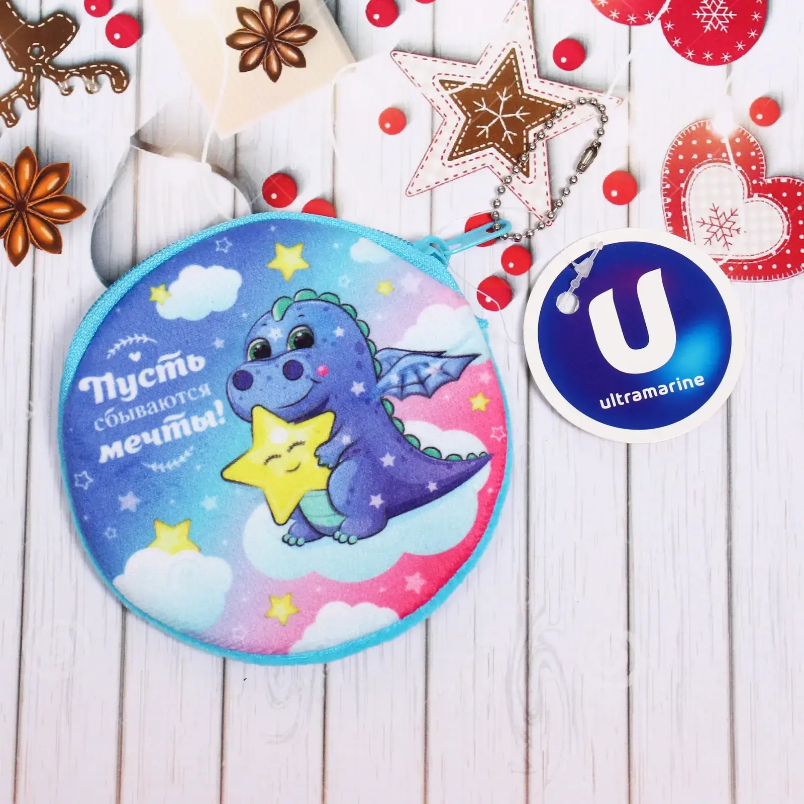 Кошелек выполнен в форме круга и украшен изображением дружелюбного дракона, который держит желтую звезду. Он идеально подходит для детей, которые любят яркие и необычные вещи. С помощью застежки на молнии, кошелек легко открывается и закрывается, что делает его использование простым и удобным.