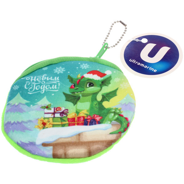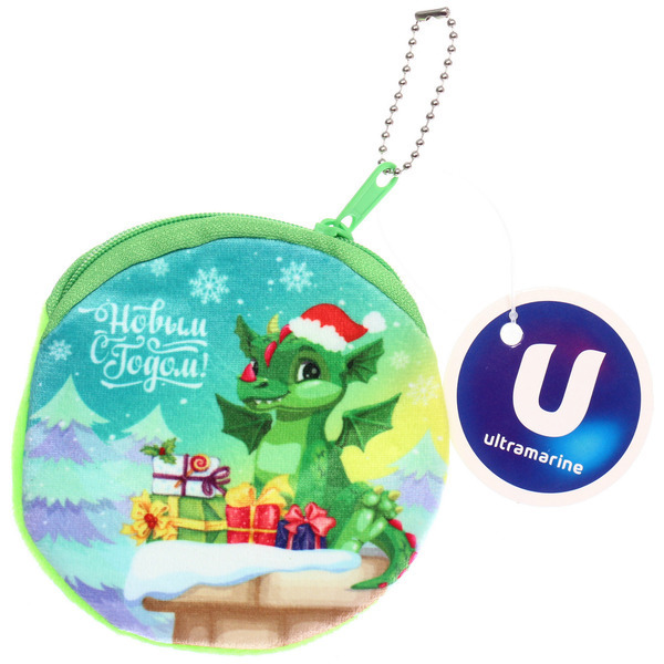 Кошелек выполнен из прочного полиэстера, что обеспечивает долговечность и легкость в уходе. Яркий зеленый цвет и изображение дракона в новогодней шапке делают его привлекательным для детей. Кроме того, наличие цепочки позволяет прикрепить кошелек к рюкзаку или поясу, что предотвращает его потерю.