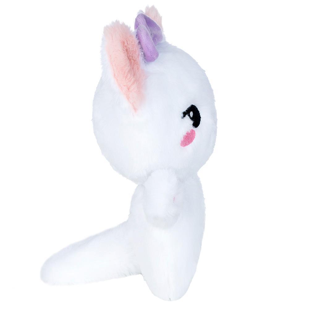 Игрушка выполнена из гипоаллергенных материалов, имеет мягкую набивку и яркие детали, такие как вышитое лицо, бантик и подушечки на лапах. Благодаря своему размеру 25 см и легкости в уходе — ручной стирке в теплой воде — она идеально сочетает долговечность и практичность.