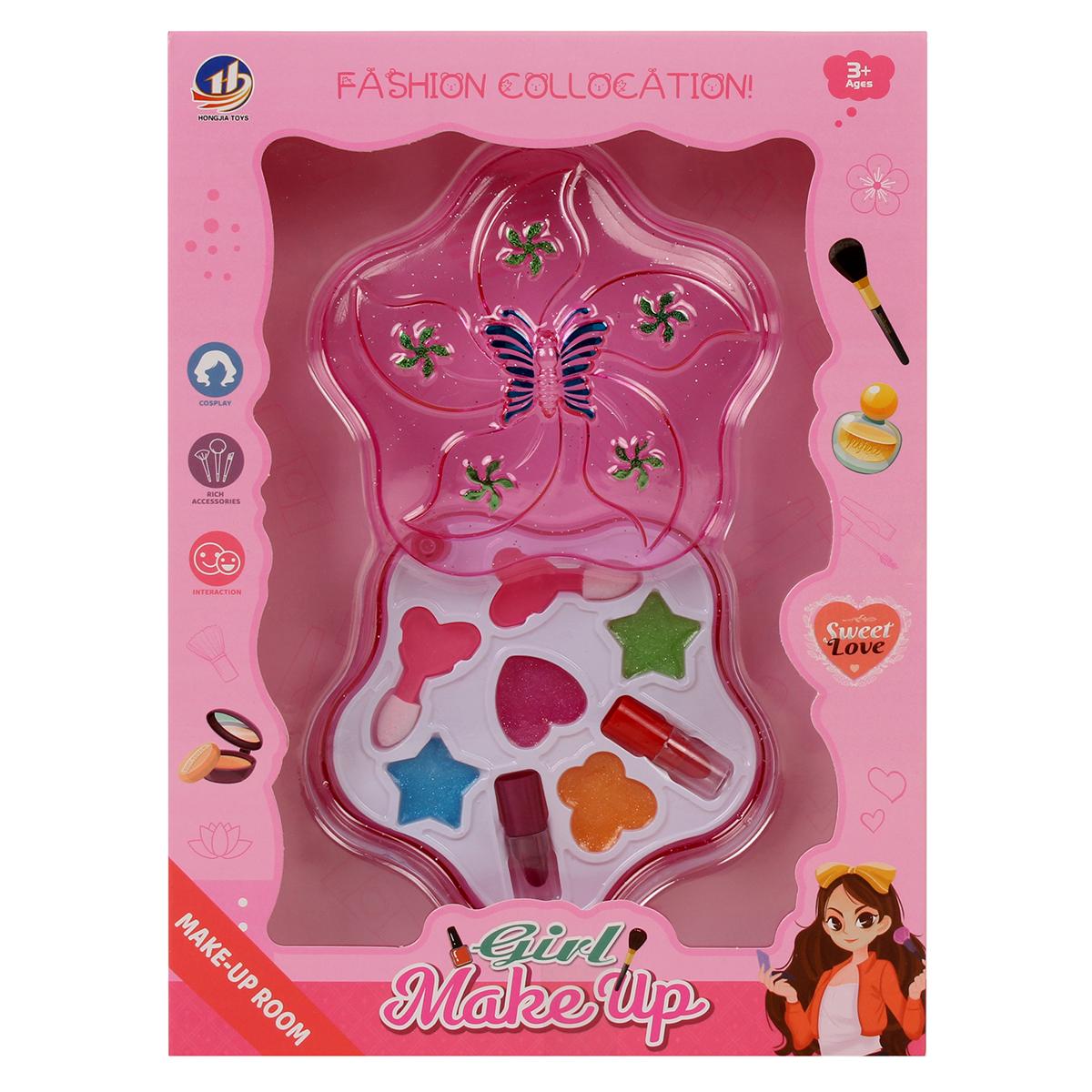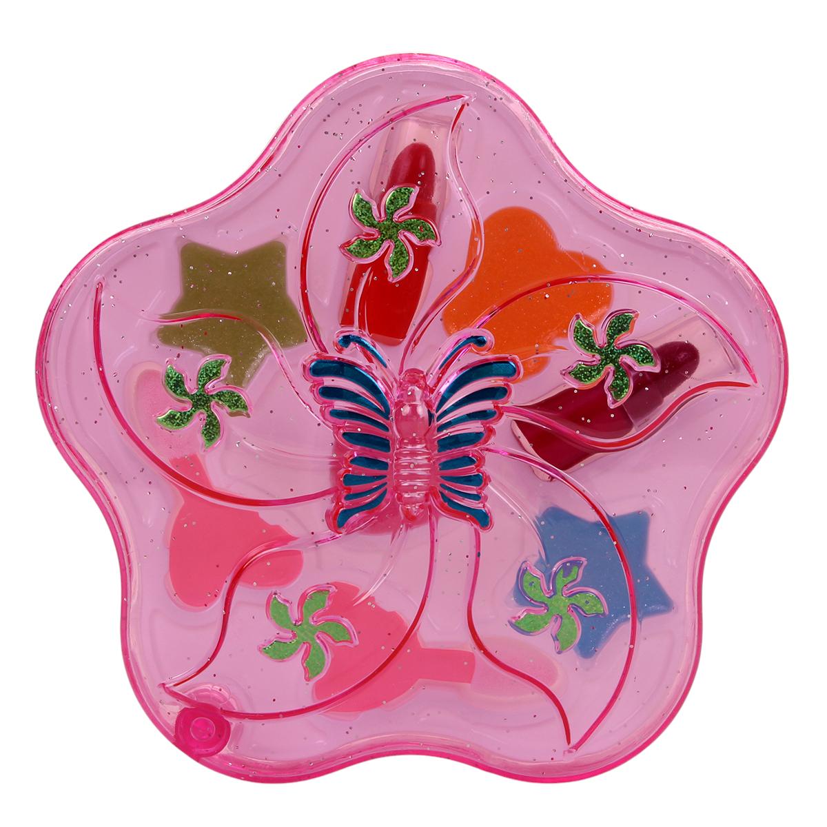 Набор косметики для девочек «Girl Make Up» в коробке-цветке с блестками, 6 предметов, гипоаллергенный, 19х3.6х26 см