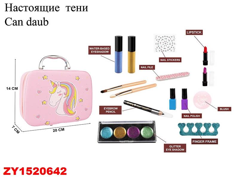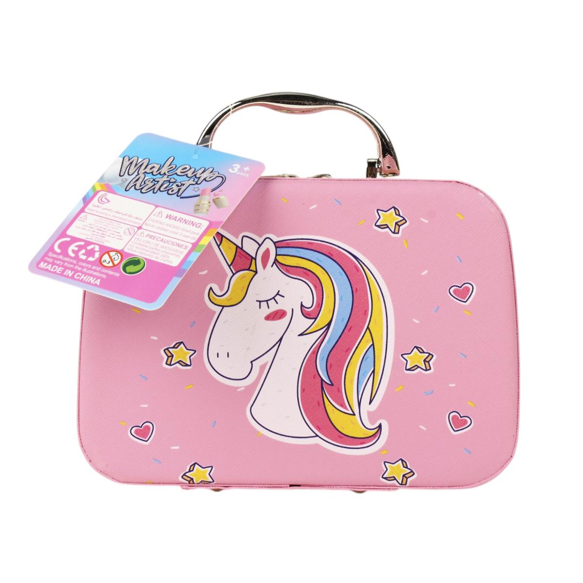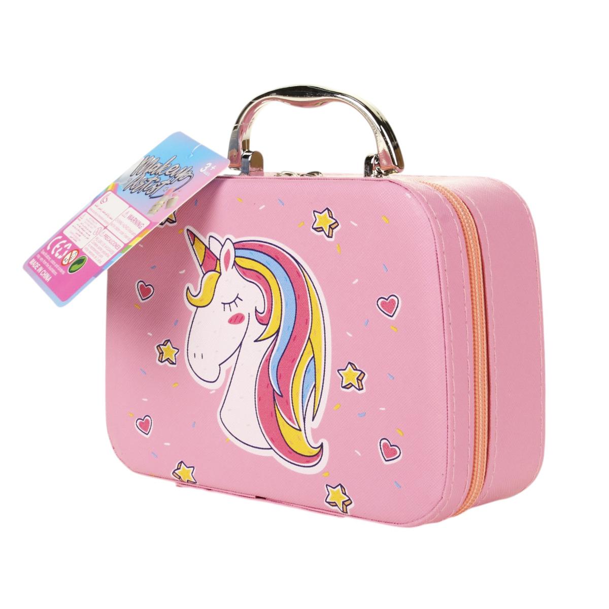 Косметический набор для девочек, чемоданчик на молнии, розовый, единорог, 14х20х7см, безопасная косметика