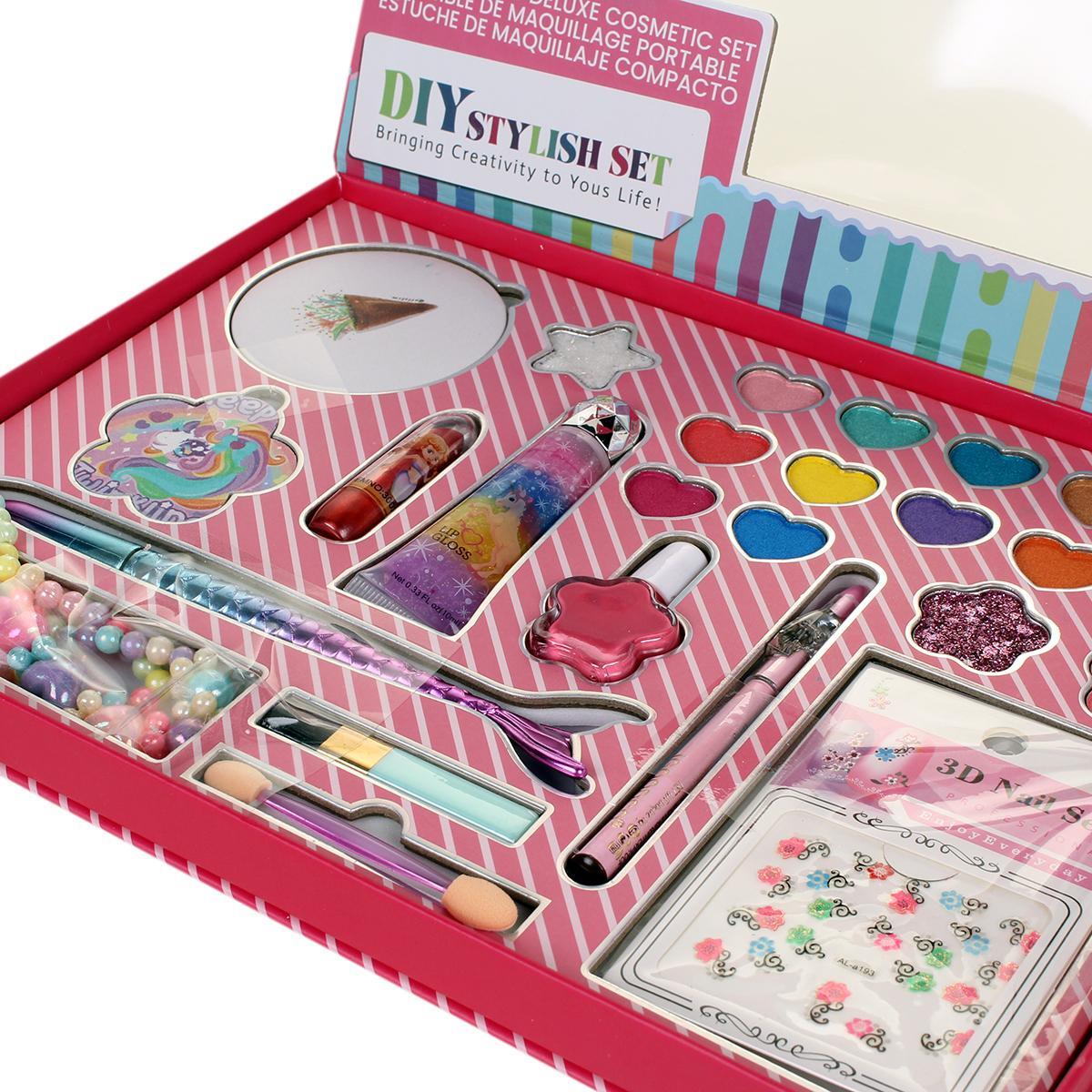 Подарите своей дочке возможность проявить креативность и стиль с этим замечательным косметическим набором! Он не только безопасен, но и гипоаллергенен, что делает его идеальным выбором для детей. Набор включает в себя разнообразные косметические продукты, такие как блеск для губ, тени для век, румяна и аппликаторы, что позволяет создавать множество образов и экспериментировать с макияжем.