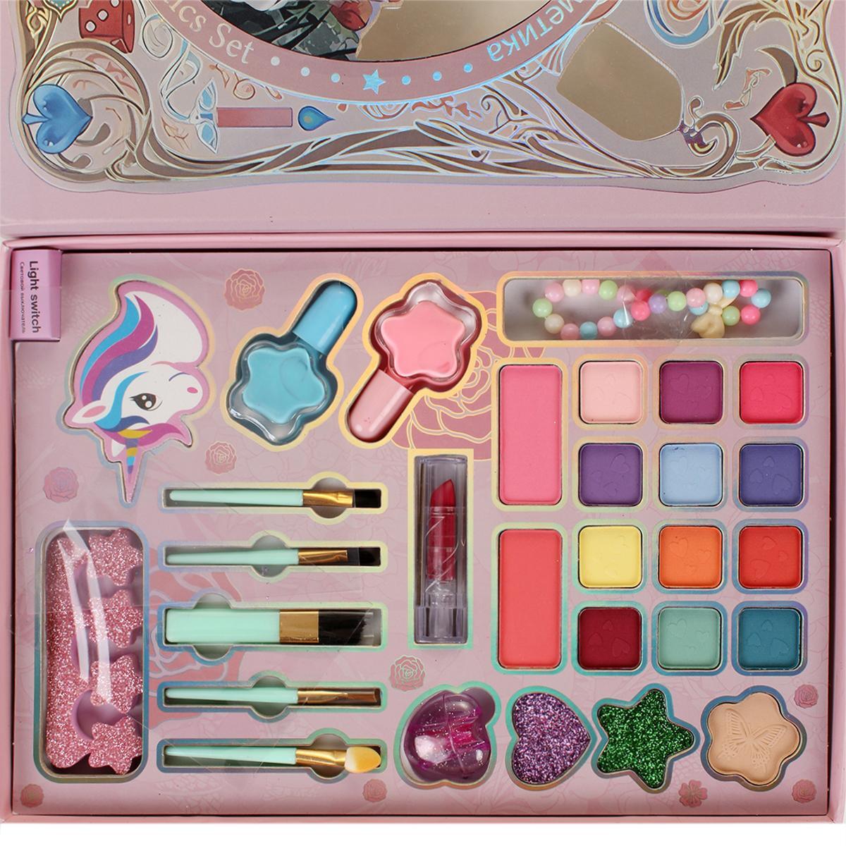 Этот набор идеально подходит для девочек, которые любят экспериментировать с макияжем. В нем есть тени для век, помады, румяна и аппликаторы, что позволяет создавать разнообразные образы. Косметика легко смывается водой, что делает ее безопасной для использования даже для самых маленьких.