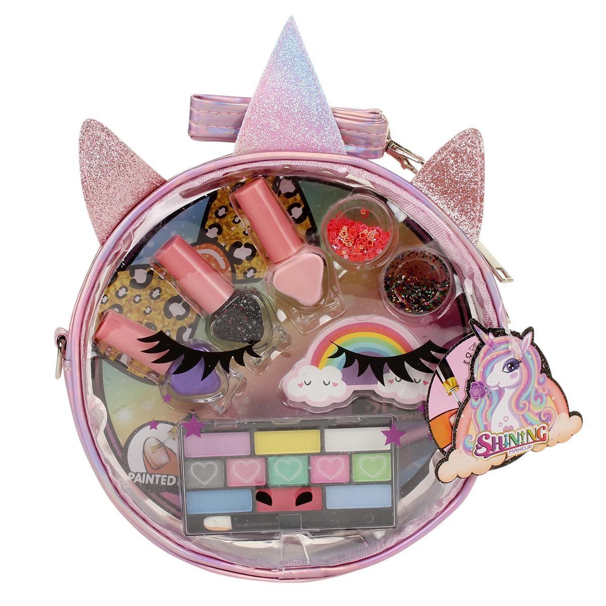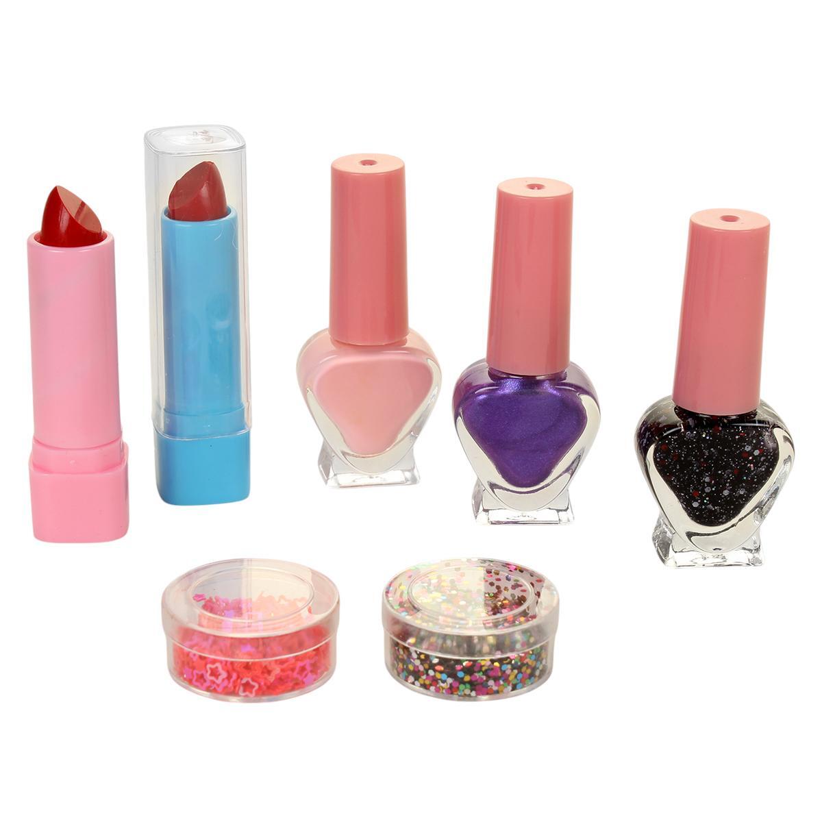 Косметический набор включает в себя все необходимое для создания яркого образа: тени для век, помады, румяна, лаки для ногтей и аппликаторы. Он идеально подходит для девочек и подростков, которые хотят попробовать себя в роли визажистов. Удобная сумочка позволяет легко переносить все косметические средства, а яркие цвета и блестки делают его особенно привлекательным.