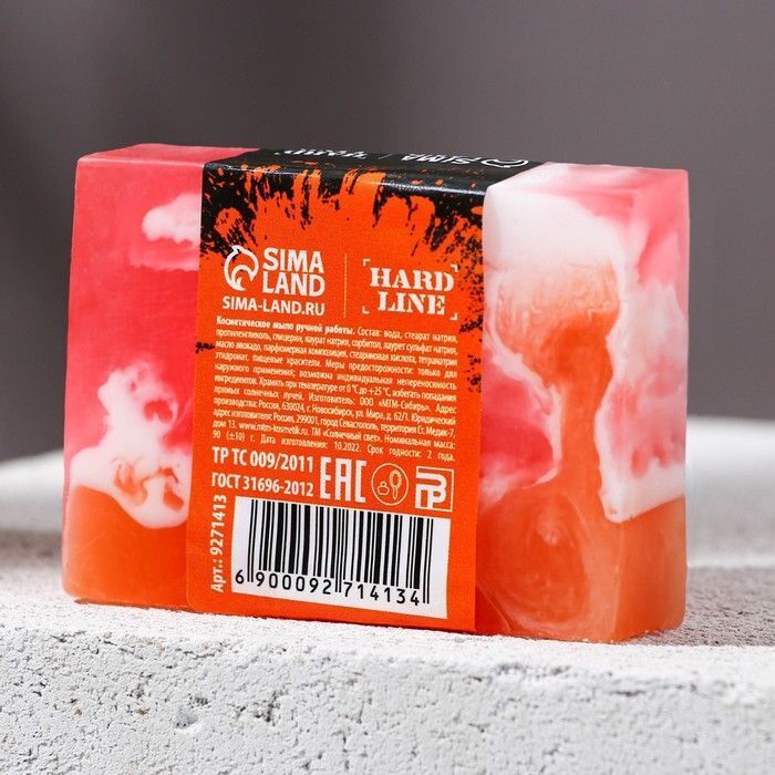 Объем мыла составляет 90 гр, что делает его удобным для использования и хранения. Мыло имеет прямоугольную форму и гладкую поверхность, а его цветовая гамма включает красный, белый и розовый оттенки, что добавляет визуальной привлекательности. Храните мыло в сухом месте при температуре от 0 °C до +25 °C, избегая попадания прямых солнечных лучей, чтобы сохранить его свойства на долгое время.
